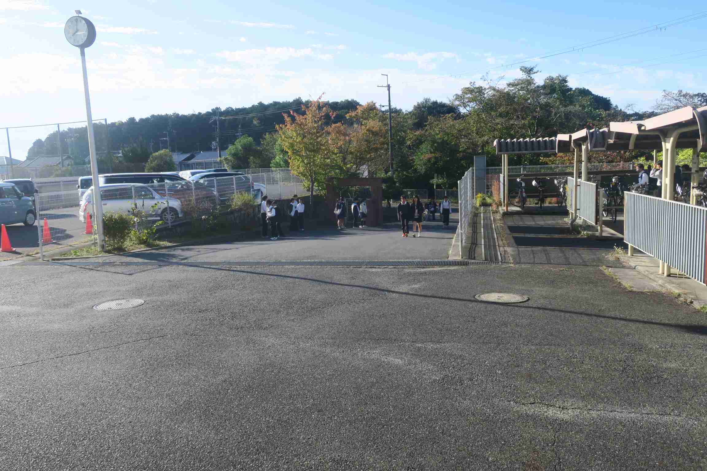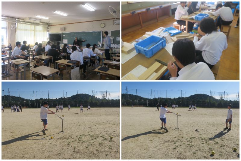 今日は朝から青空が広がり空気が乾燥していてさわやかな秋晴れです。グラウンドは太陽の日差しに温もりを感じることができました。今日の1時間目、グラウンドでは2年2組が体育の授業でソフトボールをしていました。キャッチボールをした後、バッティング練習をしました。慣れてくるとボールを上手くとらえて遠くまで飛ばす人もいました。みんな笑顔で生き生きと活動をしていました。