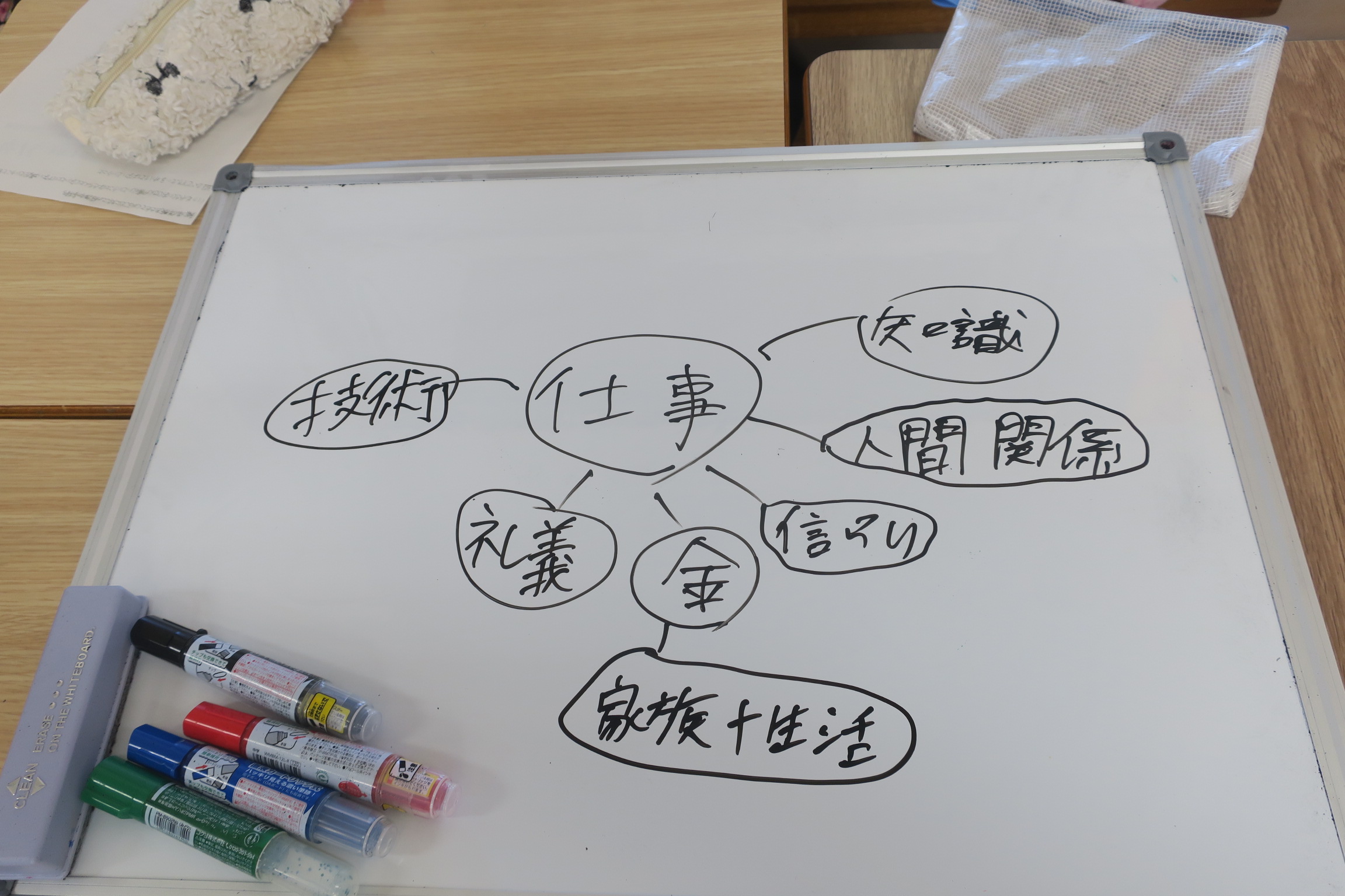 今日の5時間目に2年生は11月から行う「職場体験学習」に向けて事前学習に取り組んでいます。すでに体験場所も発表されています。今日は「仕事する上で大切なこと」についてグループで意見を交流していました。技術、知識、人間関係、信頼、礼儀、生きがい・やりがい、誰かの役に立つためそして家族を支えるため・生活するためのお金という意見がありました。2年生はこれからマナー講座や地域で活躍されている方の話、事前訪問等を行い職場体験学習当日を迎えます。職場体験学習が終わった後、もう一度「仕事」「働くこと」について考えてみるのもいいかもしれません。