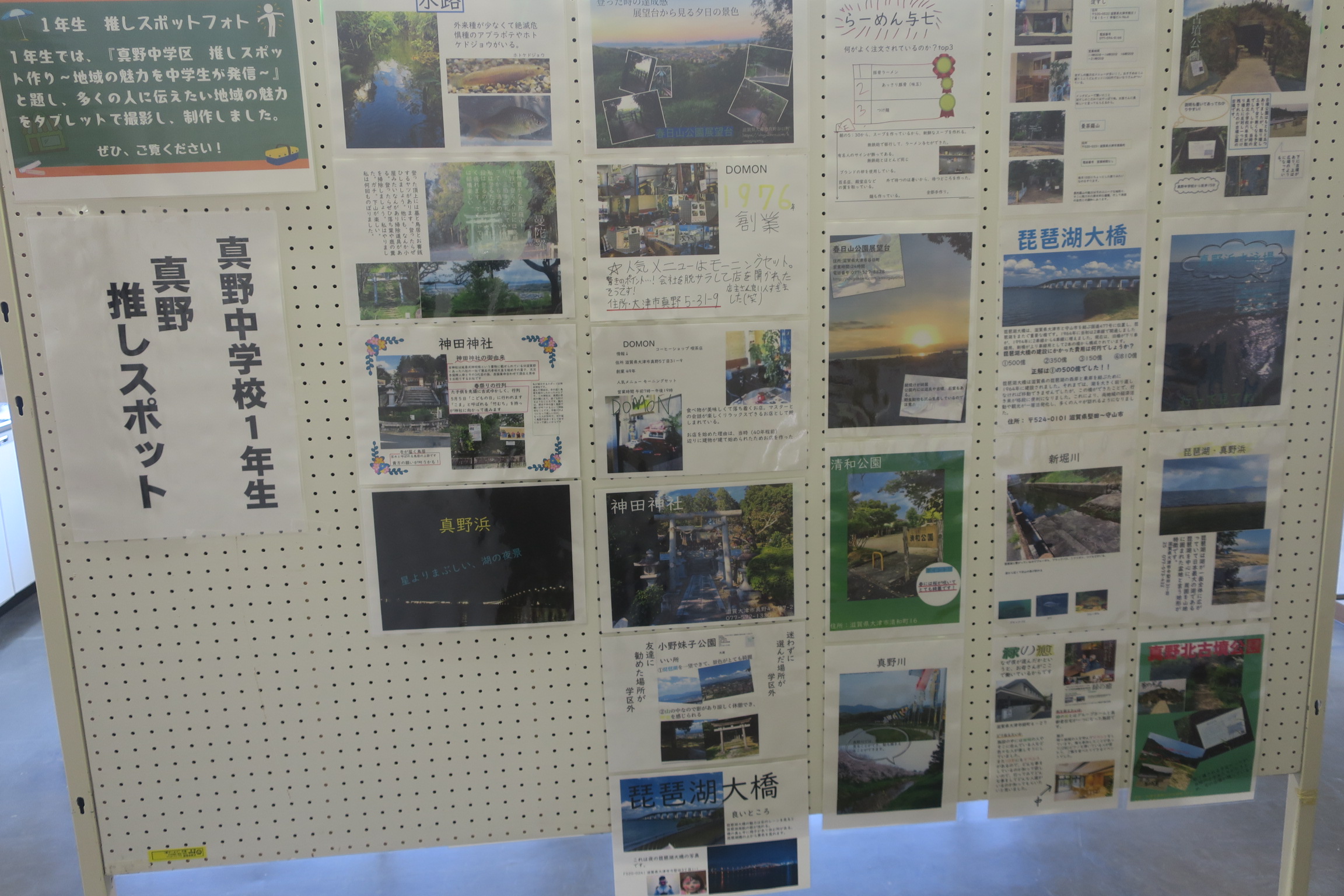 明日、25日(土)・26日(日)に真野北市民センターで真野北学区文化祭が行われます。真野中学校からは美術科・美術部の作品展示と1年生の夏休みの課題である「推しスポット」が1階で展示されています。