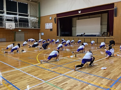2回目の授業で、今回はみんなで「真野中ストレッチ」を覚えました。