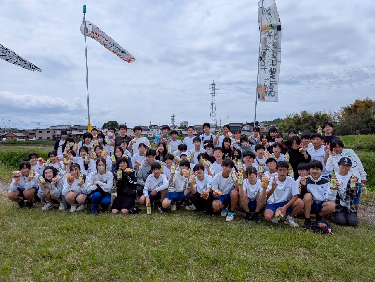 毎年恒例の「真野ふれあい鯉のぼり祭」、なんと今年で29回目のだそうです。今日は鯉のぼりの設置作業があり、60名を超える真野中生がボランティアとして参加しました。中には入学したばかりの1年生の姿もありました。