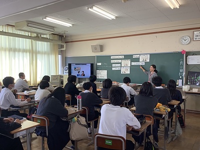 3年1組は英語でした。「チェン先生は、日本のアニメについてどう思っているのか、読み取ろう」という課題で、現在完了形を使って表現していました。