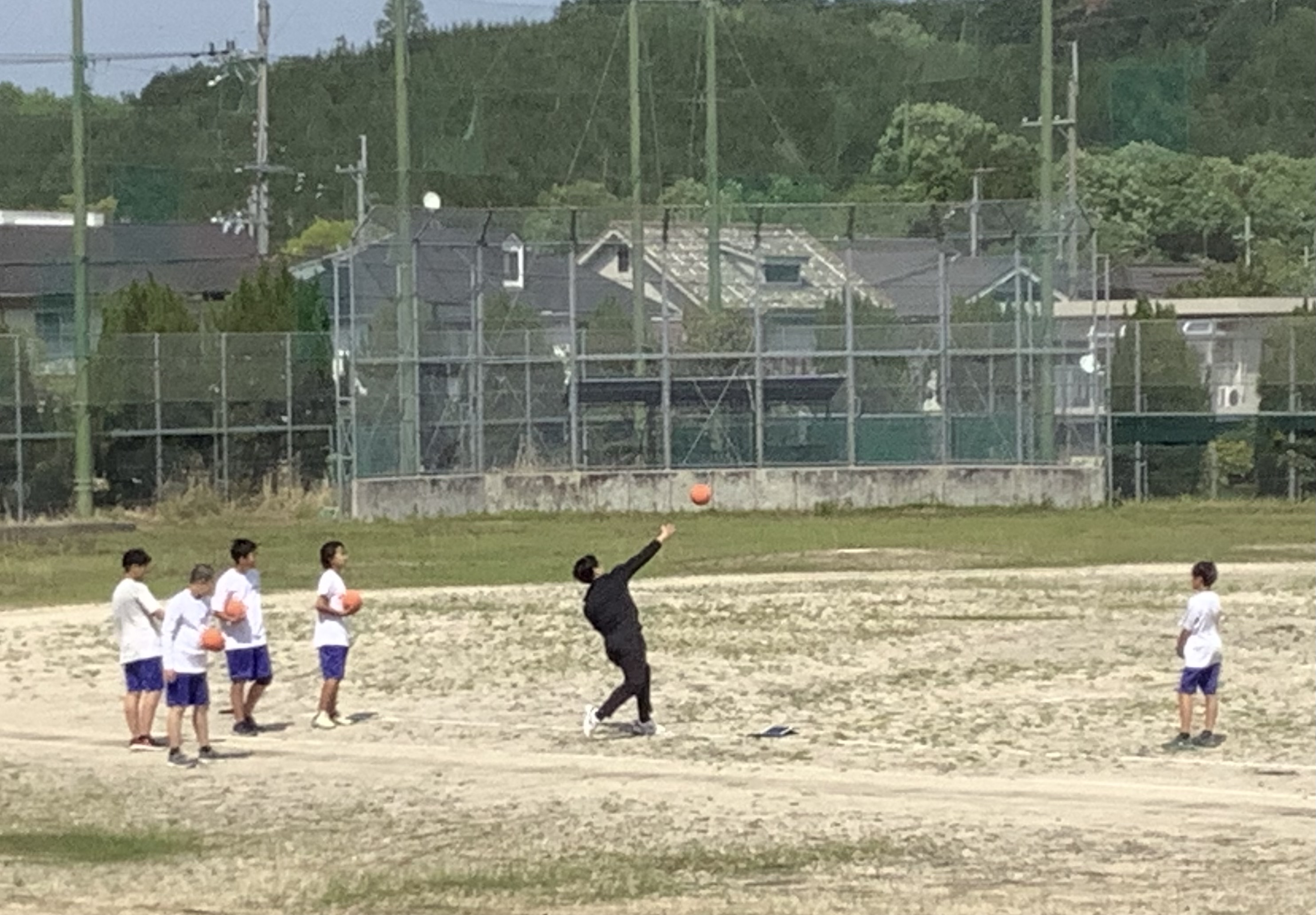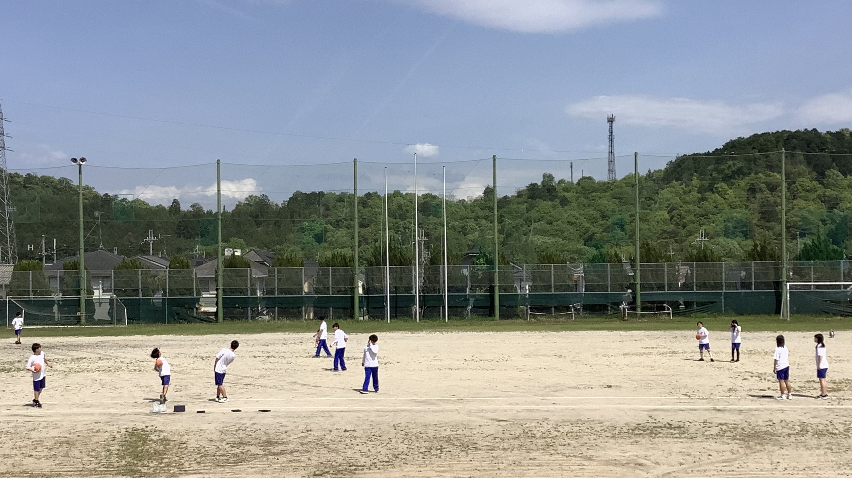 2年3組は体育で新体力テストに取り組んでいました。グラウンドでハンドボール投げの測定をしました。寺尾先生の記録を超える人はいたでしょうか。