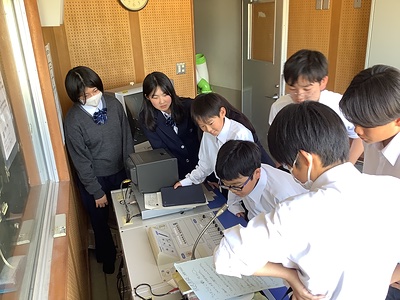 情報委員会では、委員長が1年生向けて、放送室の使い方をレクチャーしました。