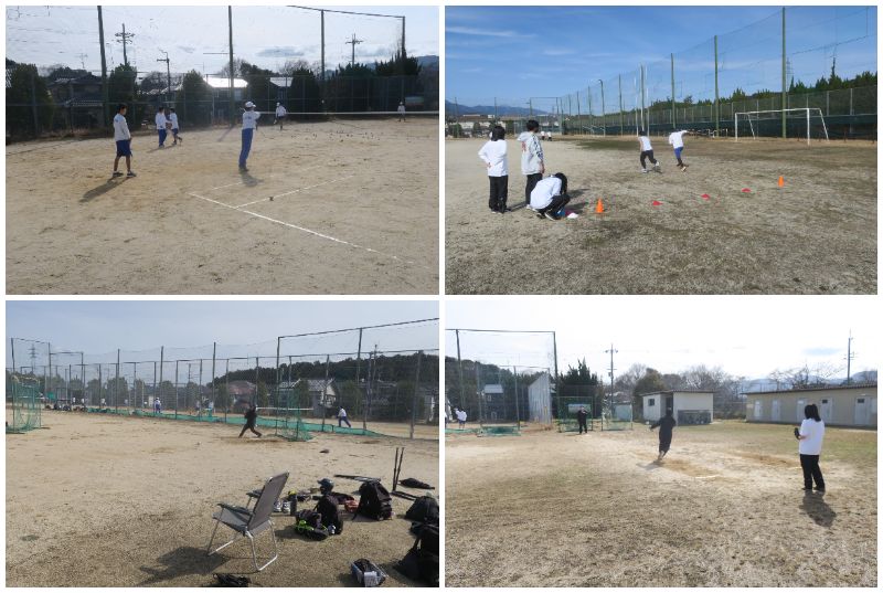 ソフトボール部はピッチャーが投球練習を行い、その他の選手はバッティング練習と守備練習に分かれて取り組んでいました。