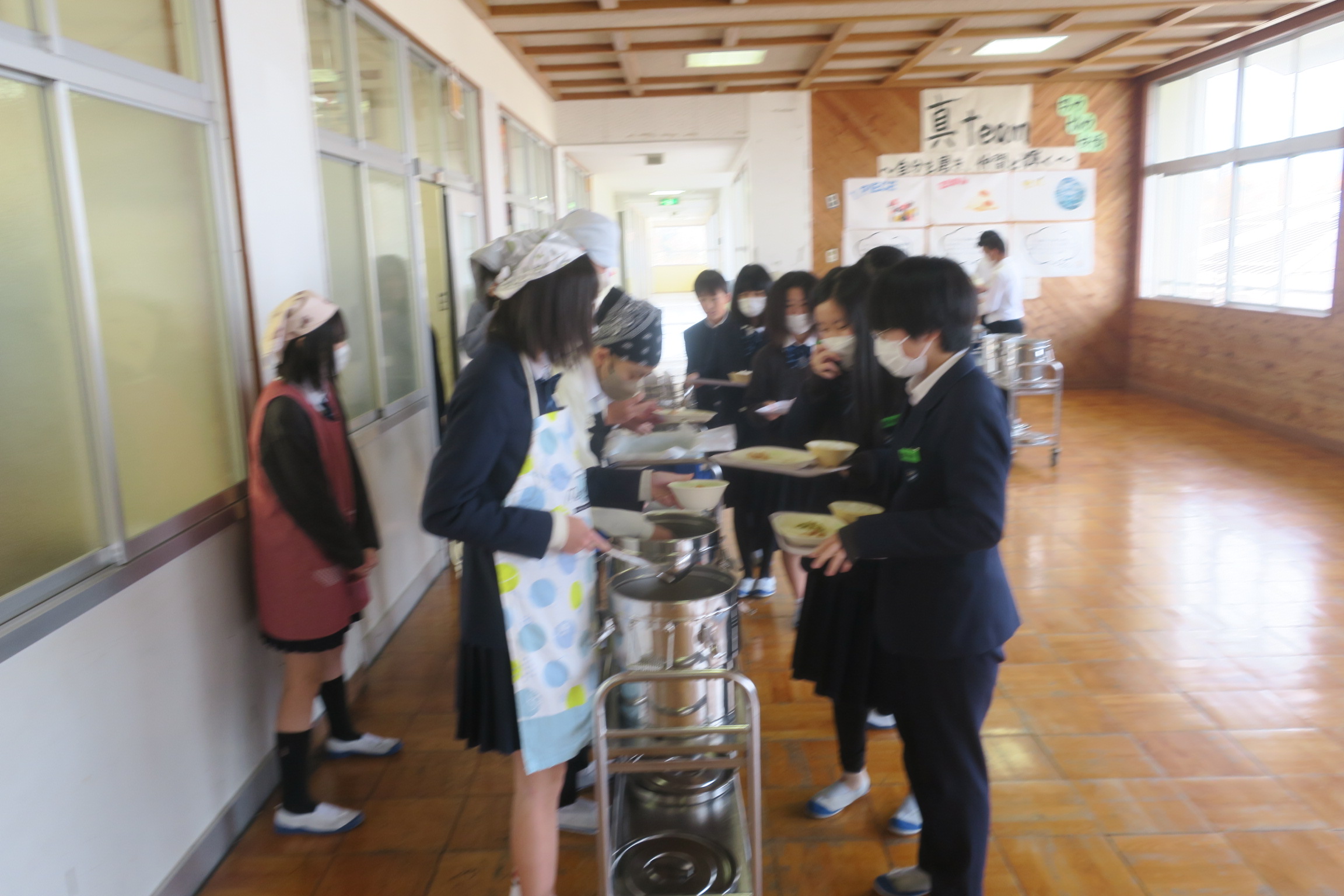2学期の給食も今週と来週の10日間になりました。今日のメニューは「白ごはん、牛乳、鶏肉のガーリック焼、はくさいとツナの炒め物、高野豆腐の煮物」でした。給食当番を中心に準備を進めています。2年生の準備がとても速く「いただきます」がいつも一番です。2年生、3年生はおかわりをする人が多く、残食がほとんどないクラスもあります。給食は栄養バランスを考えたメニューになっています。成長のまっただ中でもあります。好き嫌いがあるのは仕方がありません。できるだけ食べるようにしましょう。