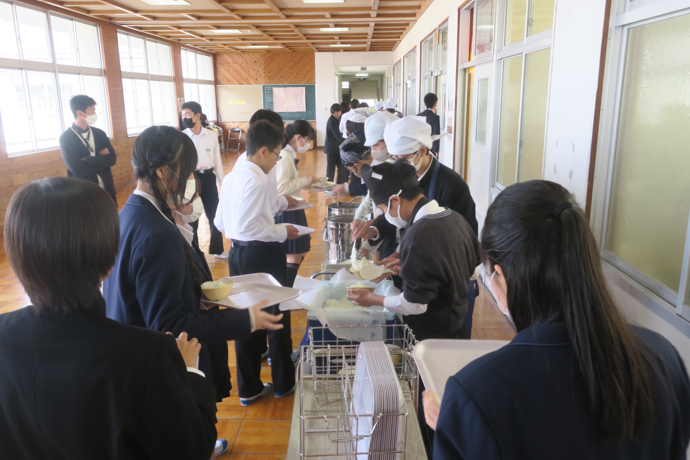 感染症対策のために教室の換気をおこなっています。暖房がついていますが十分に教室が暖まらないこともあります。制服の下に服を着込むなど寒さ対策をお願いします。感染拡大を防ぐためにご協力よろしくお願いします。