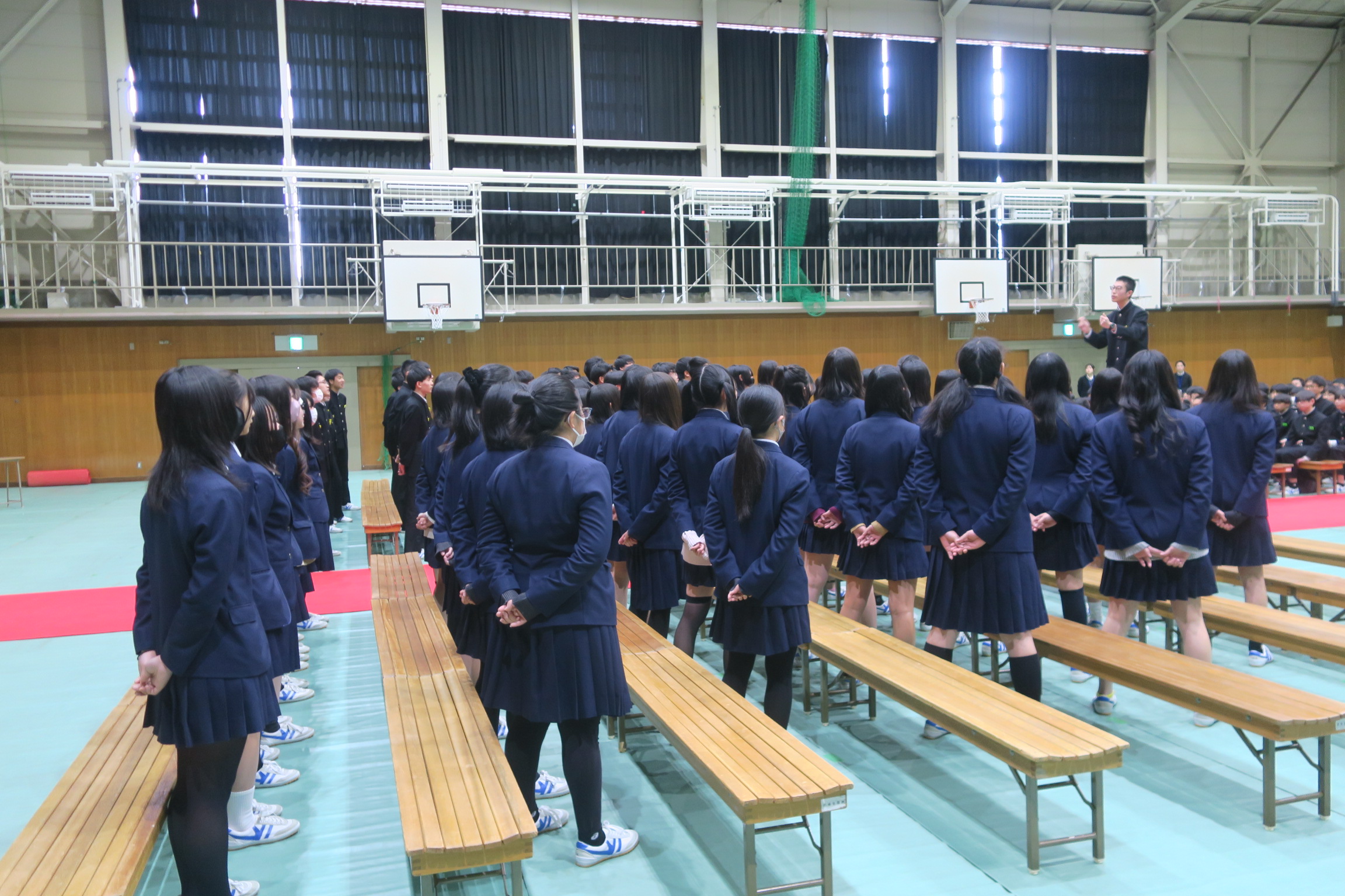 なお、体育館内は暖房は効かせますが足もとから冷えると思います。防寒着等のご用意と併せて上履きのご準備をお願いします。