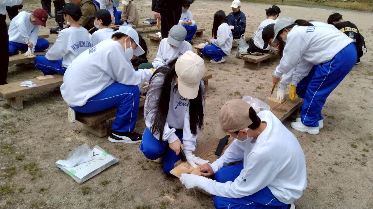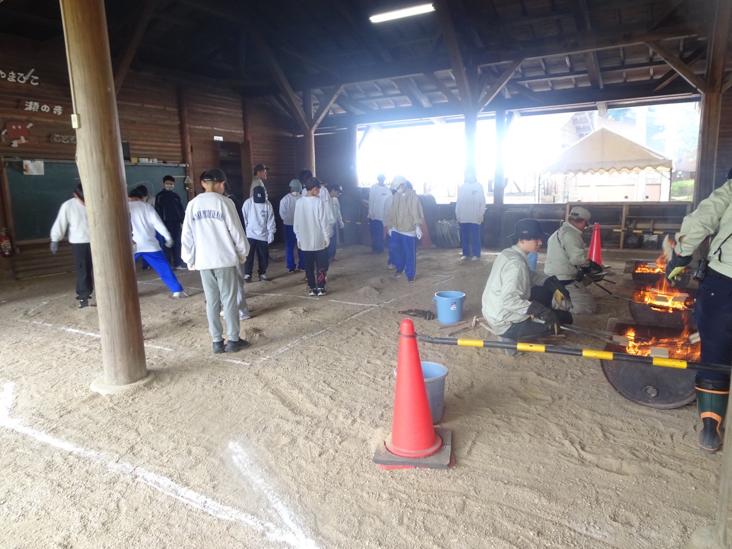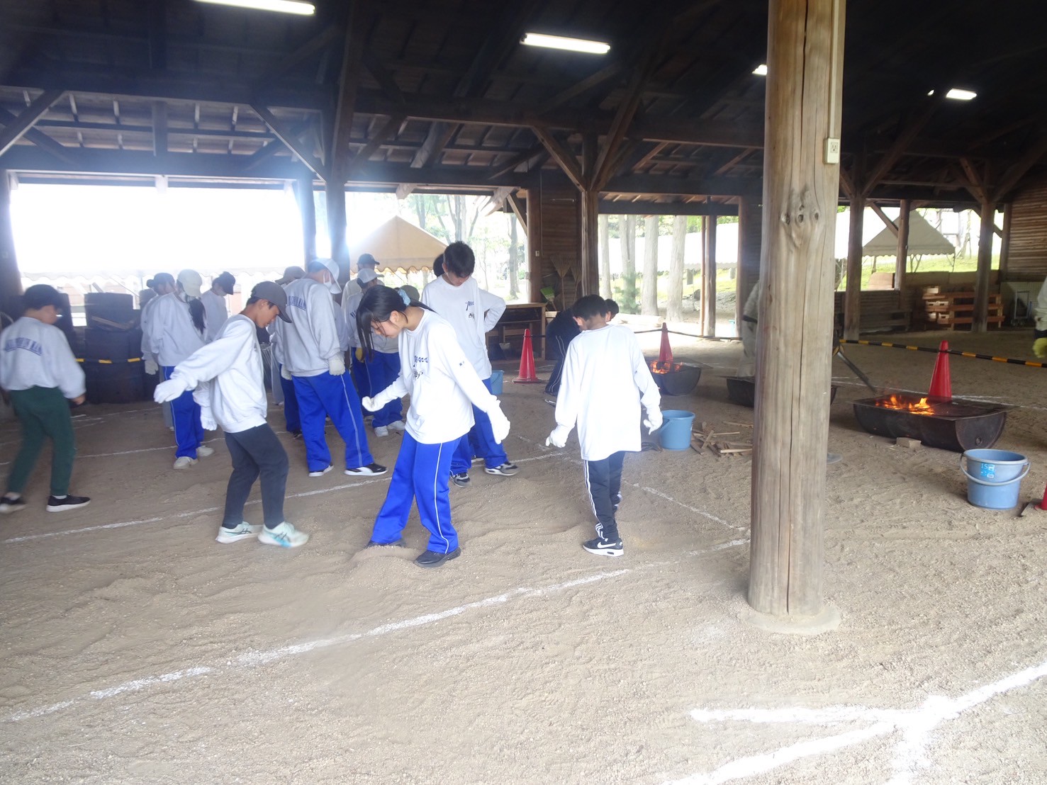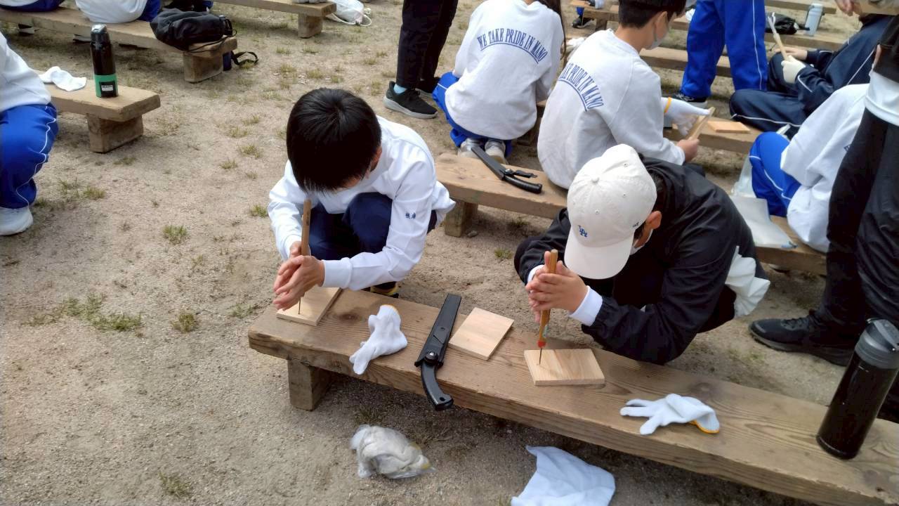 今日のプログラムは焼杉体験