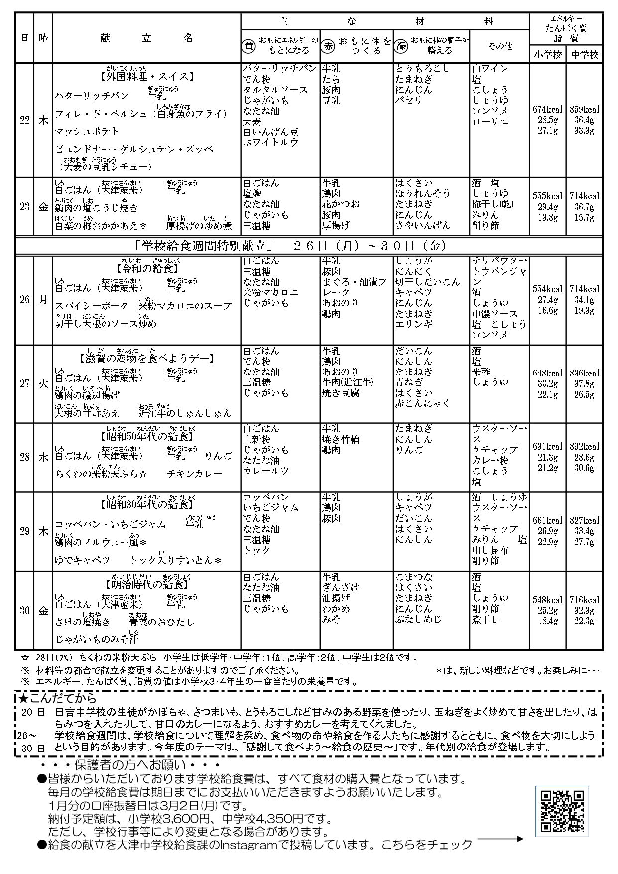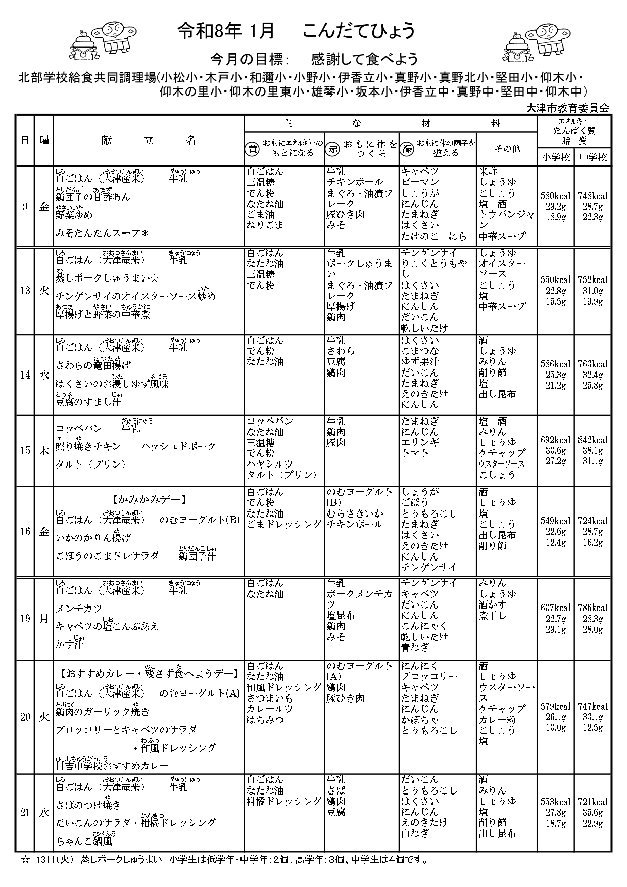 1月 9日(金)給食スタート