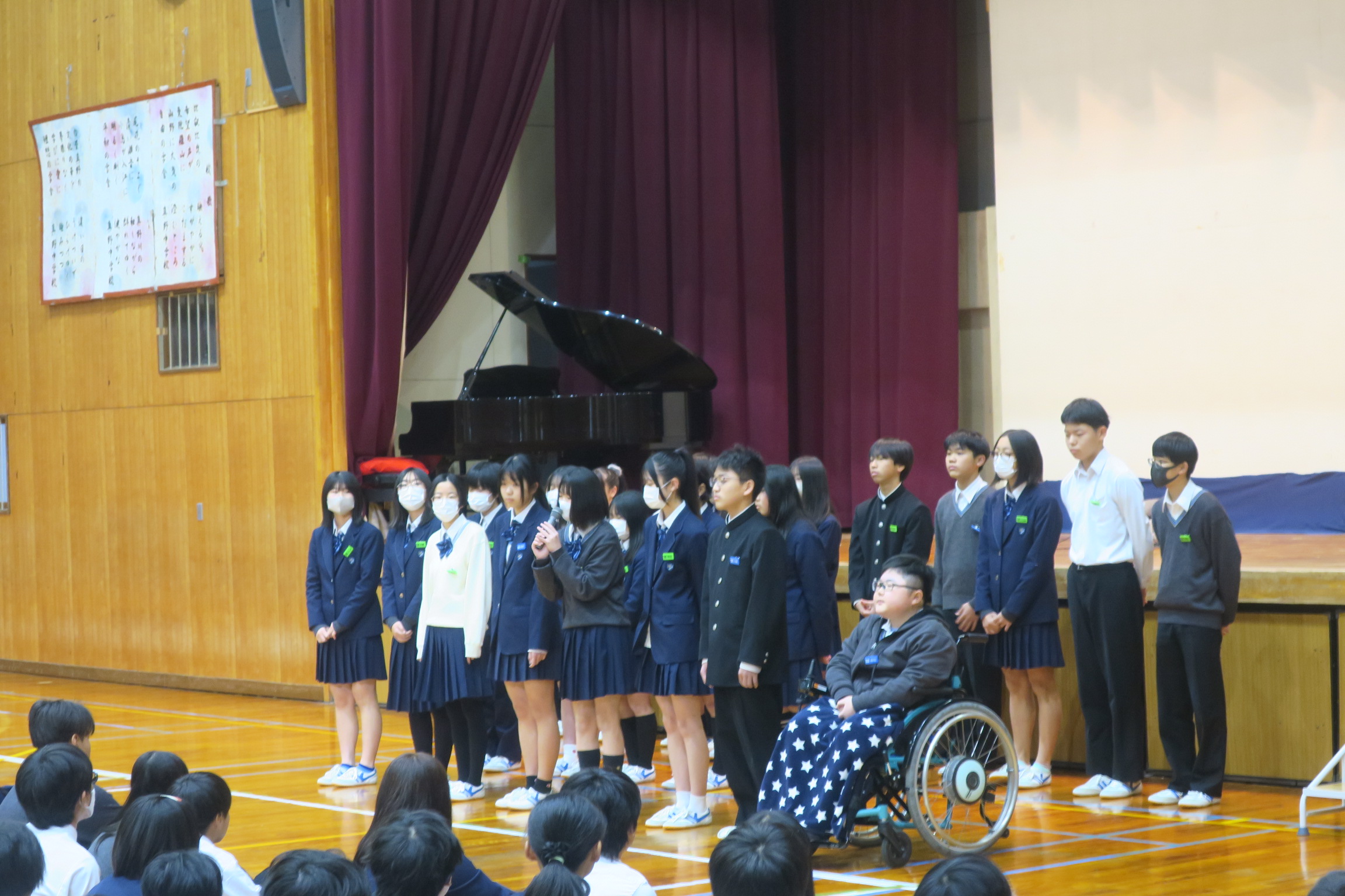 寒い中でしたが、生徒のみなさんは顔を上げてしっかりと話を聞くことができていました。発表や表彰の場面では温かい拍手が広がり、2学期を気持ちよく締めくくることができました。