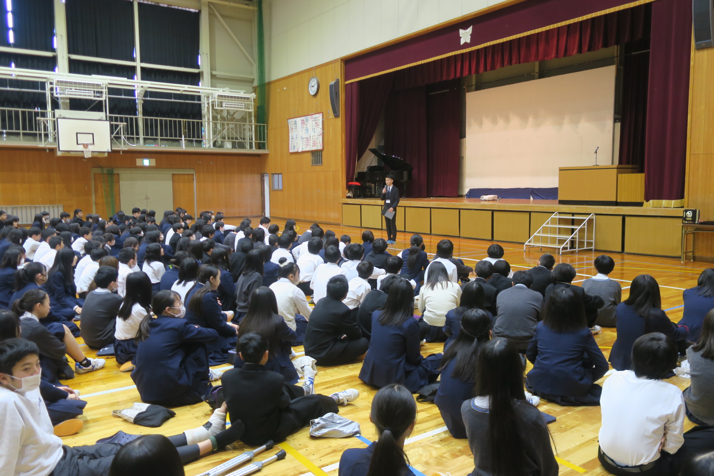 生徒指導の先生からは、「交通安全に十分注意すること」「2学期の始業式で話した『仲間との関わり』『相手を尊重する』『環境を整える』が実践できたか振り返ること」「冬休みは3学期に良いスタートを切るために、少し立ち止まって自分を見つめてほしい」という話がありました。