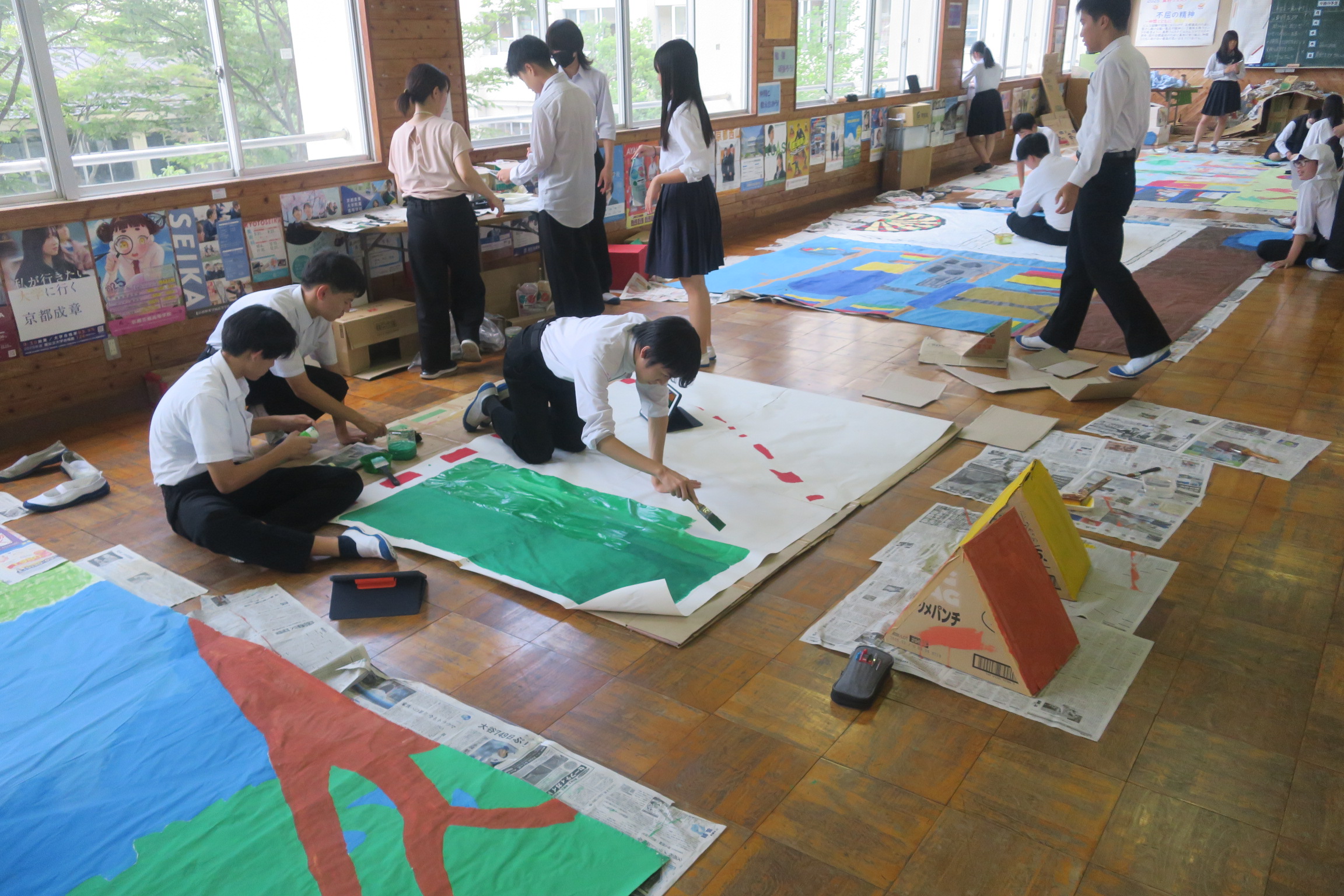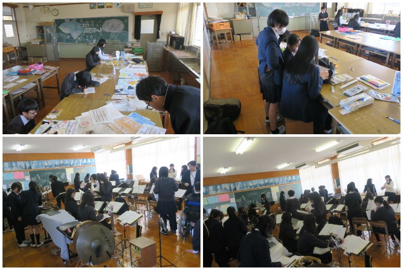 校舎では美術部と吹奏楽部が和気藹々と活動しています。