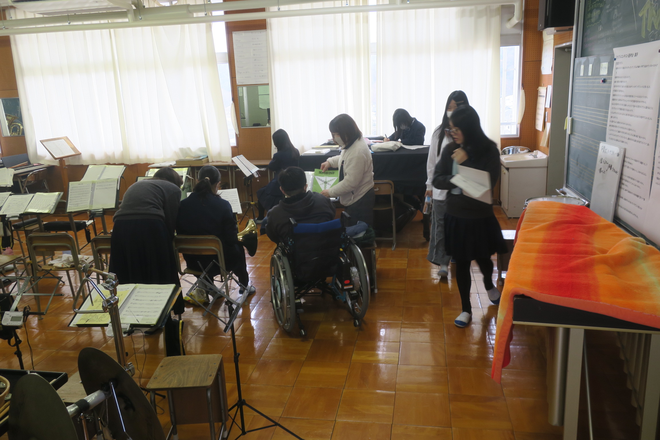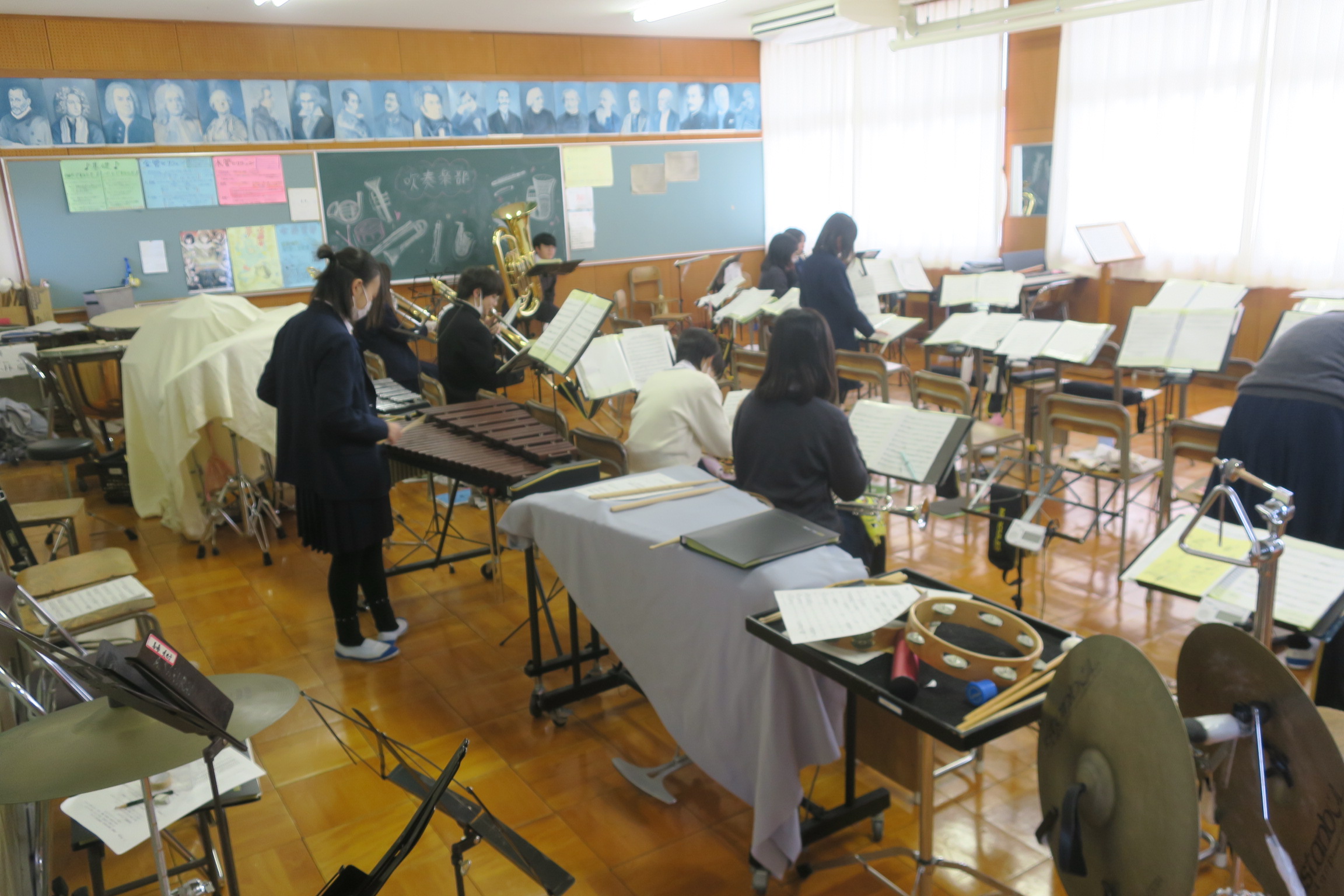 吹奏楽部は、明日のアンサンブルコンテストに向けた練習と、3月に行われる大少吹に向けたパート練習に集中して取り組んでいました。