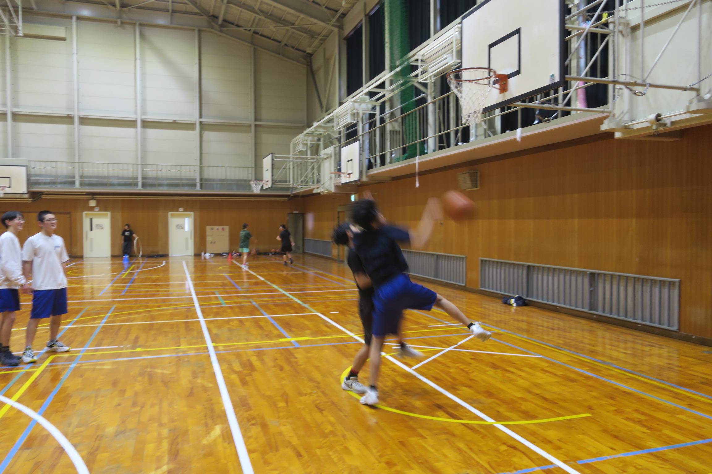 休み1日目の部活動の様子です。今日は、男子バスケットボール部、女子バスケットボール部、バドミントン部、陸上競技部、吹奏楽部が練習を行いました。男子バスケットボール部は、外れたシュートのリバウンドを確実に取るための練習に取り組んでいました。女子バスケットボール部は、2人組でパスをつなぎ、シュートまでの流れを繰り返し練習していました。