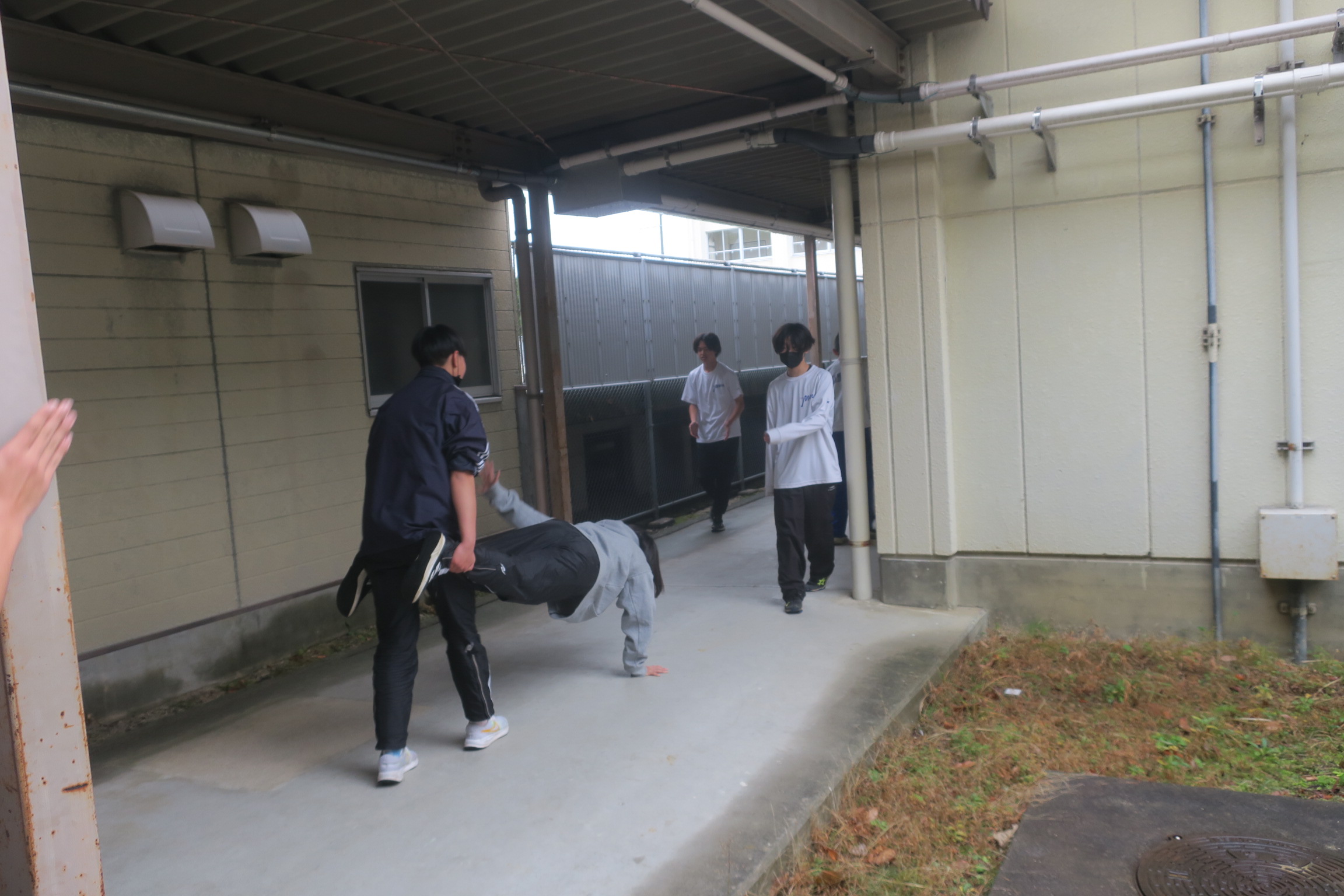 陸上競技部は、グラウンドコンディションが悪かったため、木工室横のスペースで走りの基本や補強を中心に基礎練習を行いました。
