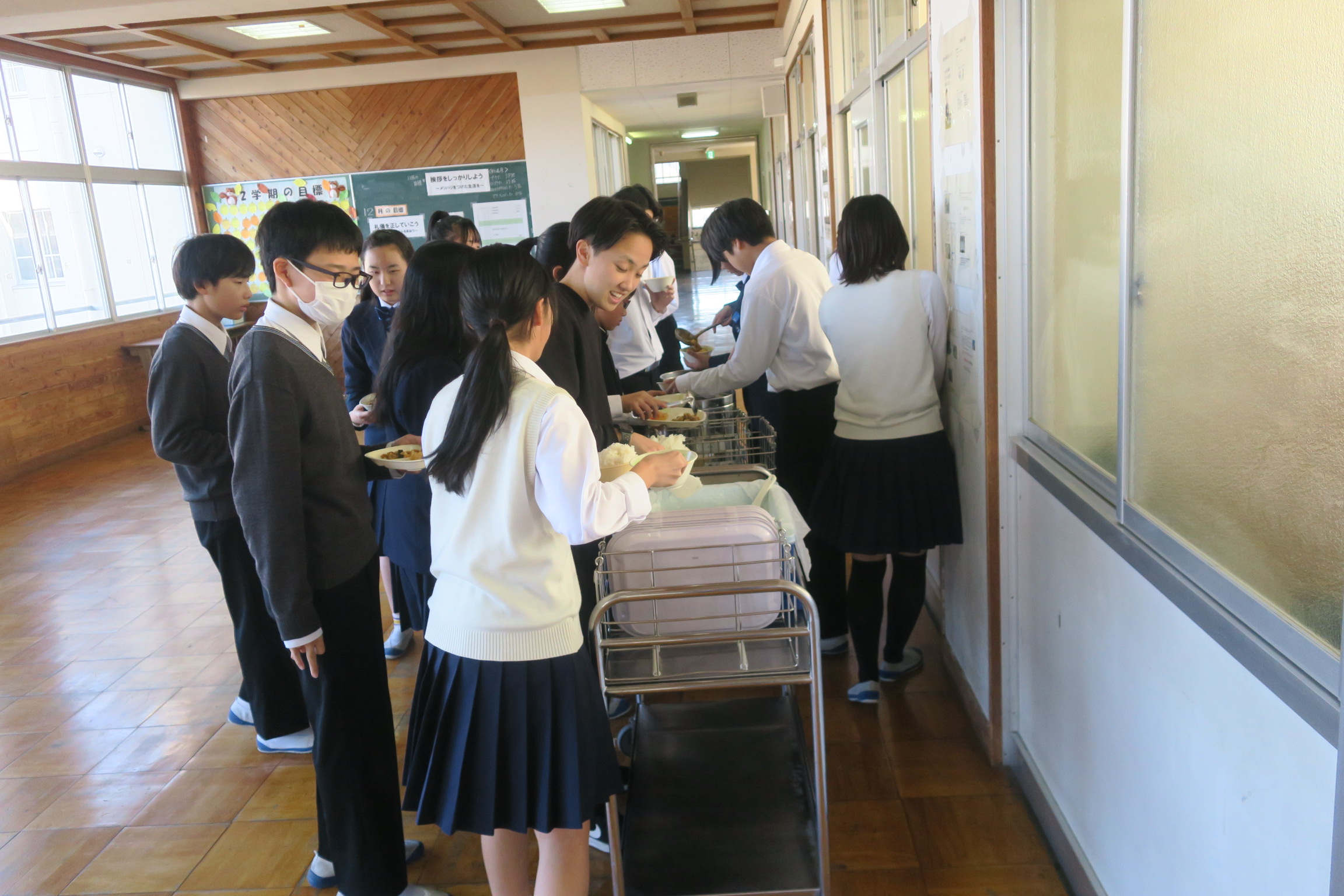 いつも準備と後片付けをしていただいている配膳員のみなさんありがとうございます。3学期もよろしくお願いします。