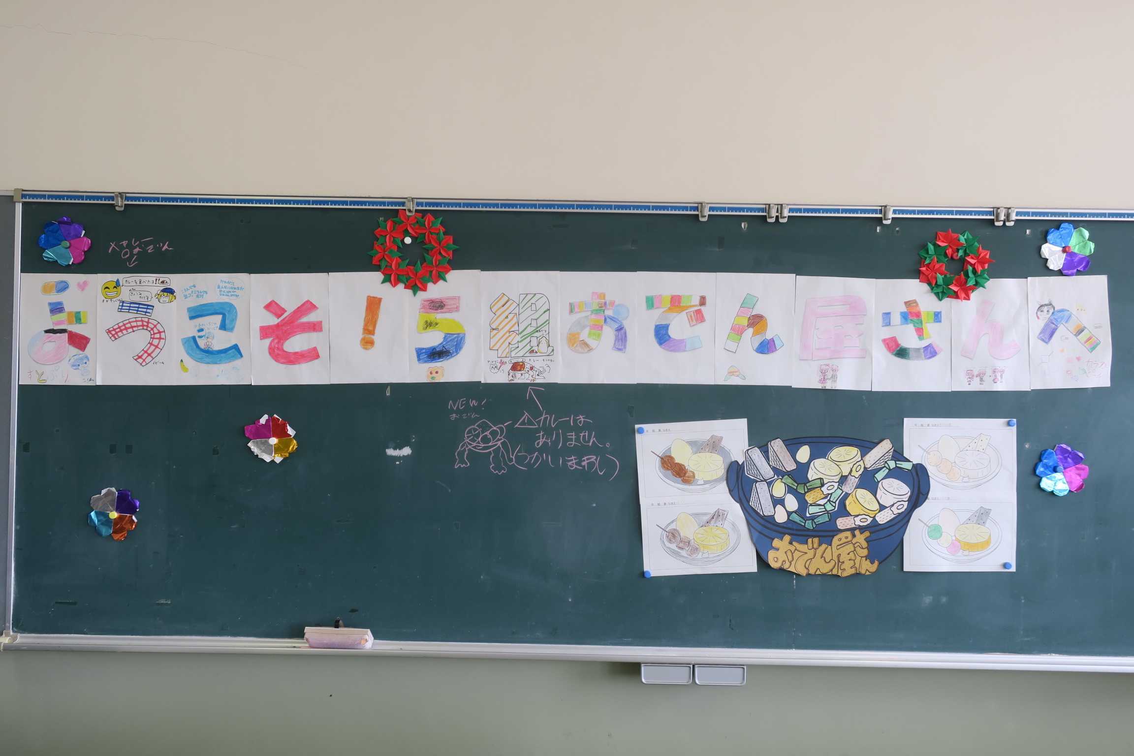 今日は、5組のおでん屋さんが真野学区青少年学区民会議のみなさん(よったり軍団)と保護者のみなさまを招待して開催されました。地域のみなさまのご協力のもと、レインボーファームで収穫した大根を使い、1時間目から下準備をしてじっくりと煮込んでくれました。5組のメンバーは、おでんと炊き込みご飯をよそい、地域のみなさま、保護者のみなさま、そして先生方に届けていました。手分けをして、スムーズに配膳できていたのが印象的です。