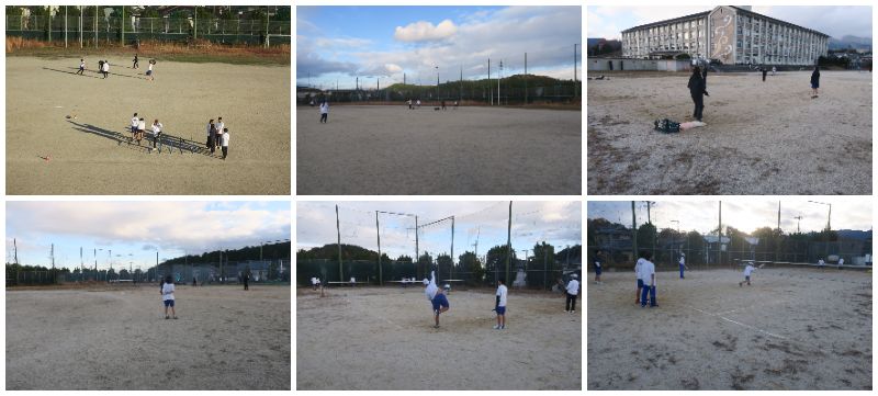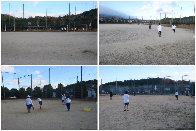 陸上競技部は、ハードルやメディシンボールを使ったサーキットトレーニングに汗を流していました。ソフトボール部は守備練習に取り組み、ゴロやフライを確実にキャッチして一塁へ送球するなど、着実にプレーが上達しています。ソフトテニス部はサーブ・ボレー・スマッシュの基本練習を繰り返し行い、テニス部はいつも通り元気なあいさつが印象的でした。
