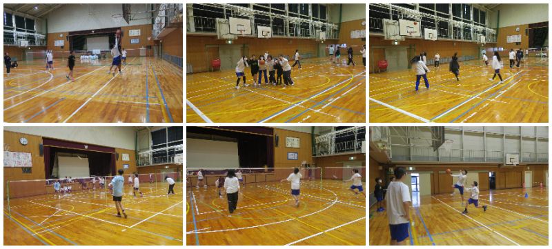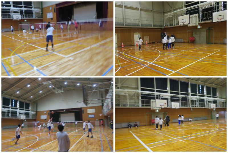 男子バスケットボール部は1対1や2対2の攻守の練習を行い、後半には明後日の大会に向けたゲーム形式のシミュレーションにも取り組んでいました。女子バスケットボール部は3対3やシュート練習を中心に、集中して活動していました。バドミントン部は2人組でラリーを続けながら、さまざまな打ち方の確認を丁寧に行っていました。