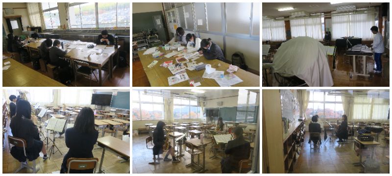 美術部は「手洗い・うがい」をテーマに、それぞれの個性を生かしたポスターづくりに取り組んでいました。吹奏楽部はアンサンブルの校内選考に向けて、チームで息を合わせながら熱心に練習していました。