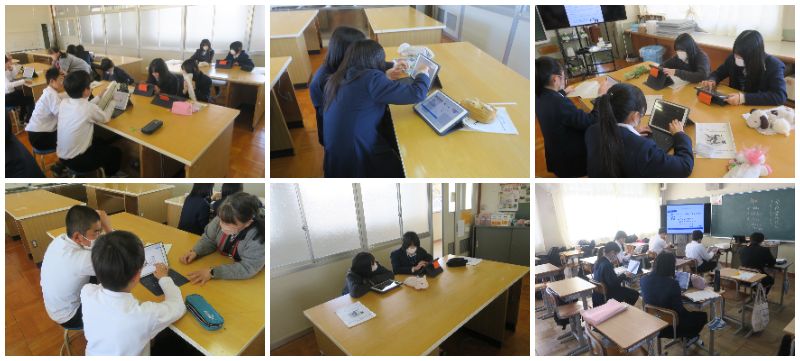 今日の5時間目、2年生は職場体験学習の事後学習を行いました。事業所ごとに集まり職場体験学習5日間の体験内容、感想、学んだことをレポートにまとめています。グループの仲間と体験を振り返りながらレポート作成を行っています。事後学習のまとめとして発表会を予定しています。事業所の方も招待しています。自分の体験したことを仲間や事業所のみなさんに届けてください。楽しみにしています。
