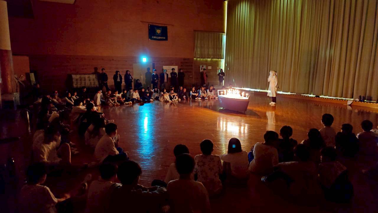 キャンドルセレモニーの最後に、学年の先生たちからの歌のプレゼントがありました応援に来てくださった他学年の先生も含め、みんなで肩を組んで歌いました
