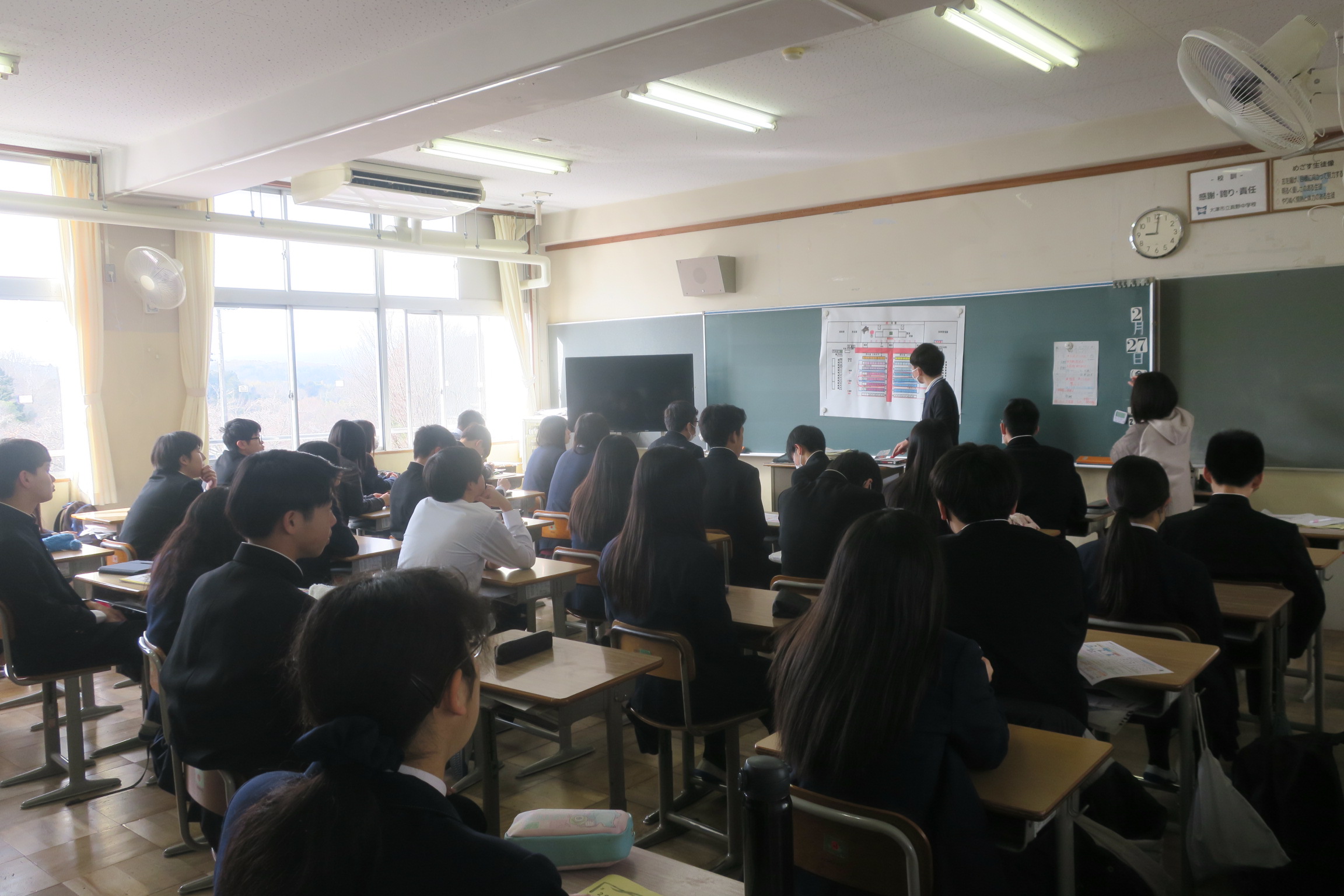 今日は朝から曇り空です。冷え込みもほとんどありません。今日の昼間は何とか天気はもちそうですが夕方頃から夜にかけて雨が降る時間がありそうです。今日から受検を終え3年生が全員そろいました。今日から始まる卒業式の練習に向けて1時間目の学活では会場図を示しながら具体的に細かいところまで流れの確認がありました。この後、体育館に移動して式練習の開始です。