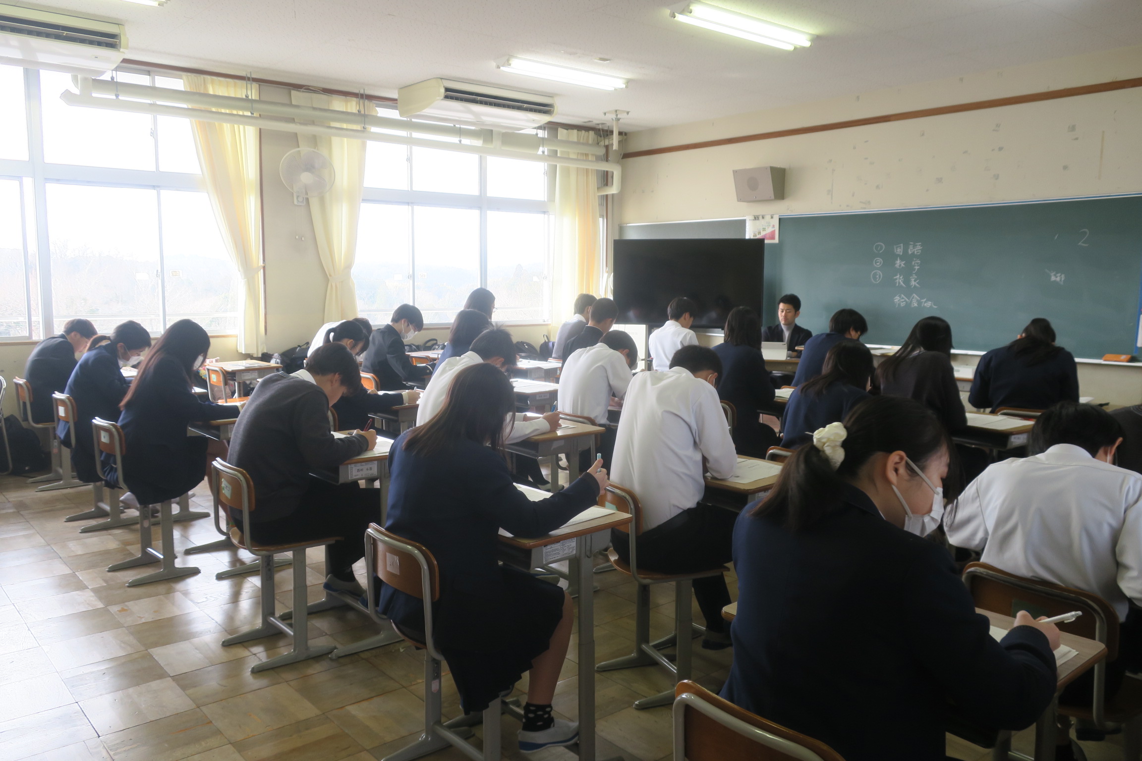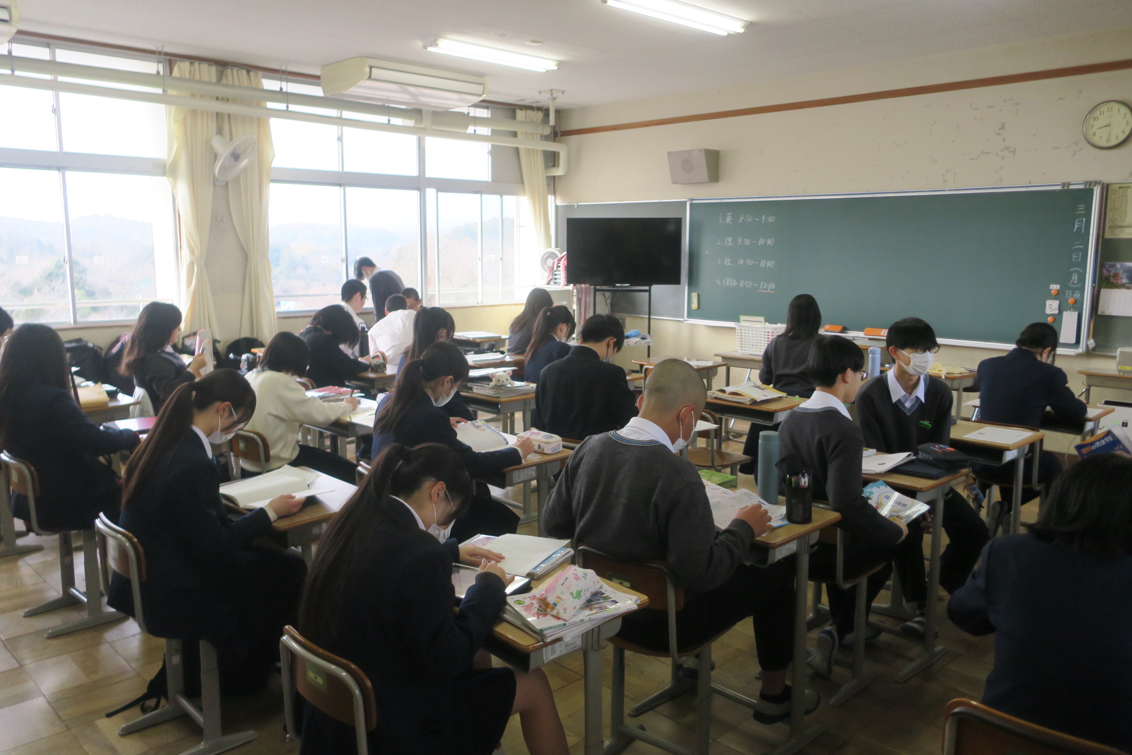1・2年生は学年末テスト2日目です。4教科のテストに取り組んでいます。今日も朝早くから登校して際ごま確認をする姿が多く見られました。教科担当の先生に土日のテスト勉強でわからなかったことを質問する姿も見られました。チャイムと同時に問題用紙に目をやり解答用紙答えを書き込む鉛筆の音だけが響いていました。テストに向けて取り組んできた自分の力を出し切ろうと全力集中しています。今は3時間目のテストです。ラスト2教科マイベストを尽くしてください!!