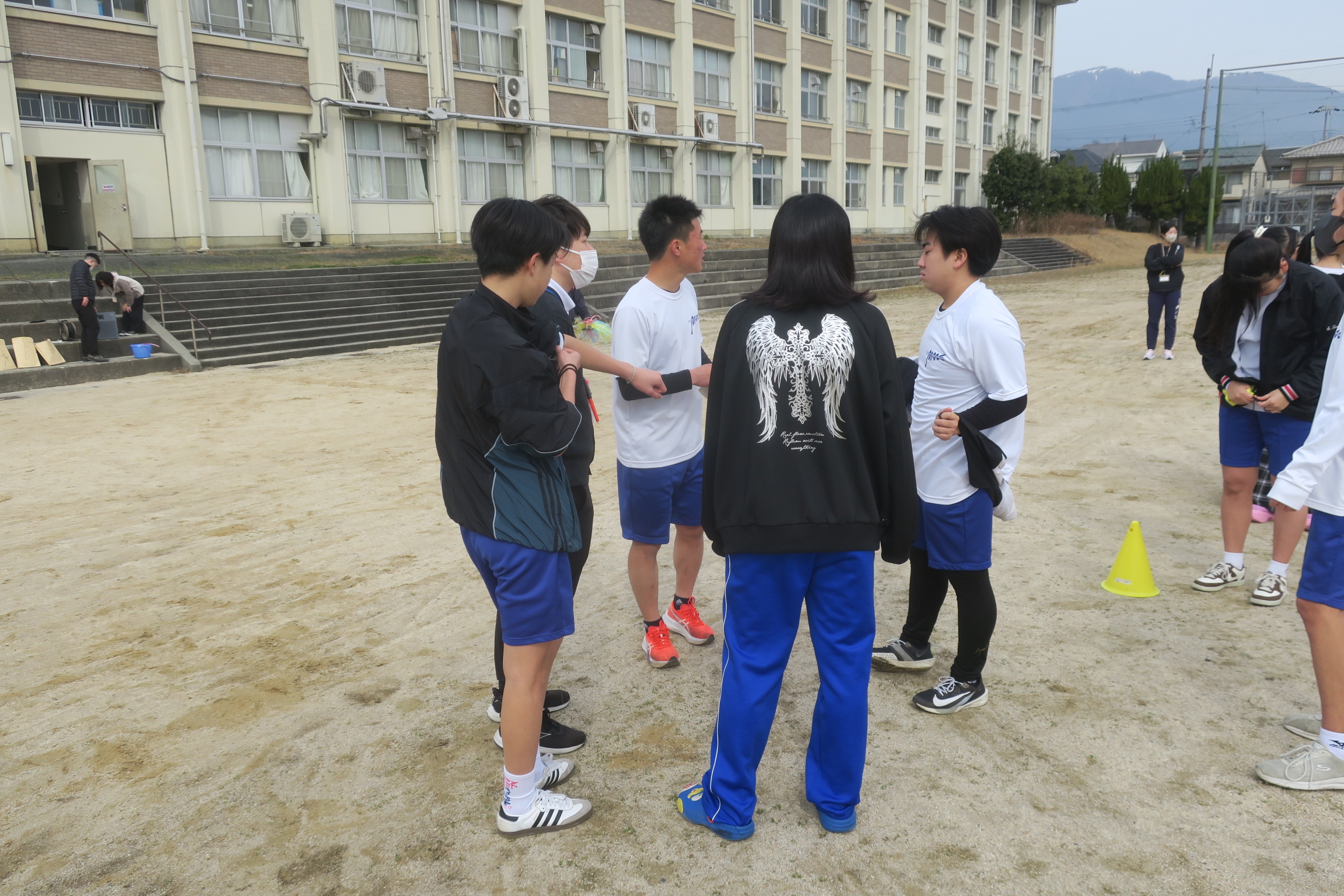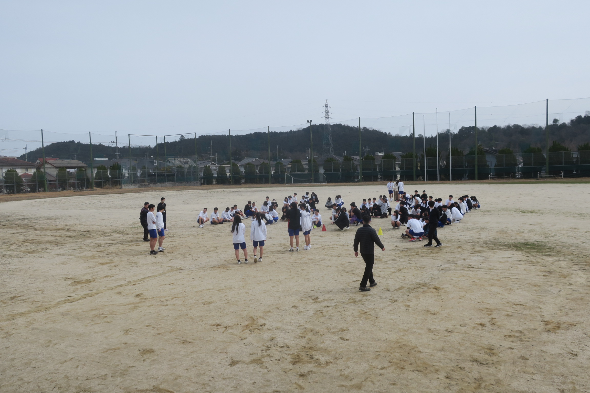 今日の1時間目と2時間目に3年生は最後の学年レクリエーションを楽しみました。1時間目は体育館で新聞紙を使ったピン球運びリレー、2時間目はグラウンドで「しっぽ取り」をしました。みんな笑顔いっぱいで歓声を上げながら仲間との一時を楽しみました。「しっぽ取り」は20分間、走り続けていたので息が切れたり、足が動かなくなる人もいました。受検もあり体育以外は運動をほとんどしていない人がほとんどだったと思います。お疲れが出ないようにしてください。