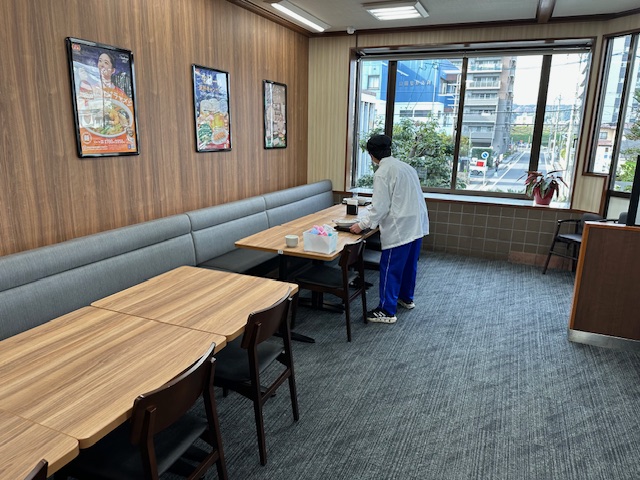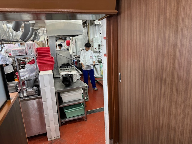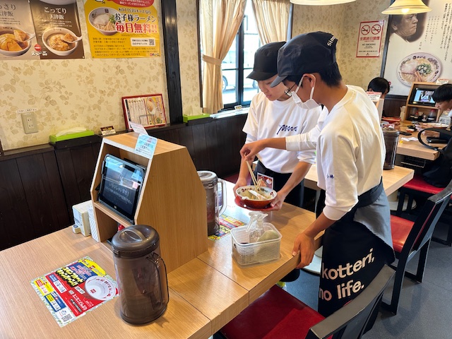 いくつかの飲食店でも職場体験でお世話になっています。水や料理を渡す人、調理場に入り料理の下準備をする人、食べ終わった食器を片付ける人、自分の役割をしっかり行っていました。昼時に行ったこともあり、十分、戦力になっていました。