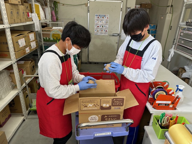小売店では納品されたジャガイモを店頭に並ぶ前に芽を取る作業を丁寧に黙々と二人で行っていました。