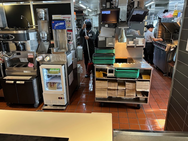 ファーストフード店ではフライドポテトを揚げる作業をしたり、ホールをモップできれいに拭く作業をしていました。スイーツ店では明日、自部で作るクッキーの仕込み作業をしていました。明日、クッキーを焼いてお店で販売するそうです。最終日にはホールケーキを自分で作るそうです。
