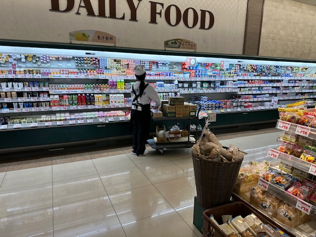 スーパーでは品出しを任せられ少なくなった商品の補充をしていました。どこにどの商品を並べればいいのかメモをとりながら確実に行っていました。