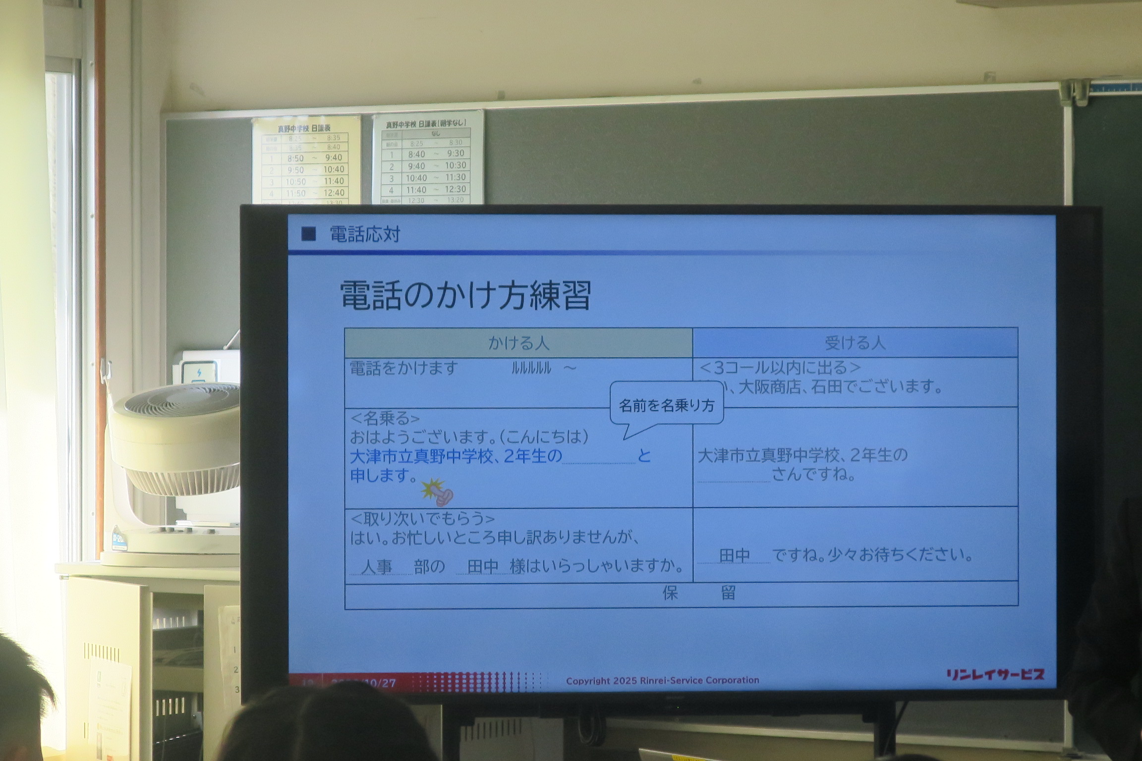 11月に入ると2年生は実際に事前訪問を行うのでとても役立つ内容でした。言葉遣いの難しさを感じた人も多かったと思います。職場体験学習に向けて、日頃から言葉遣いを大切にするようにしましょう。