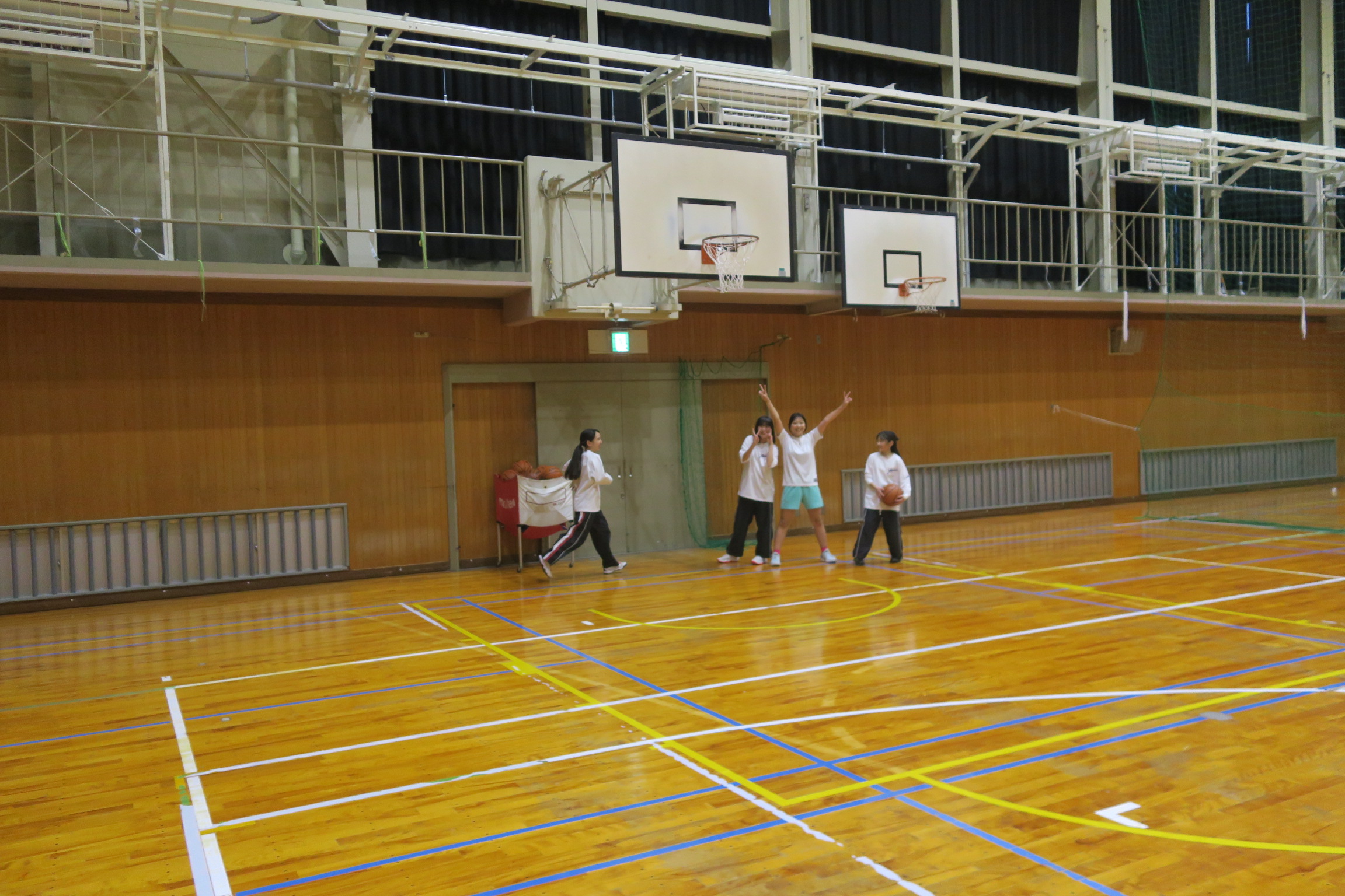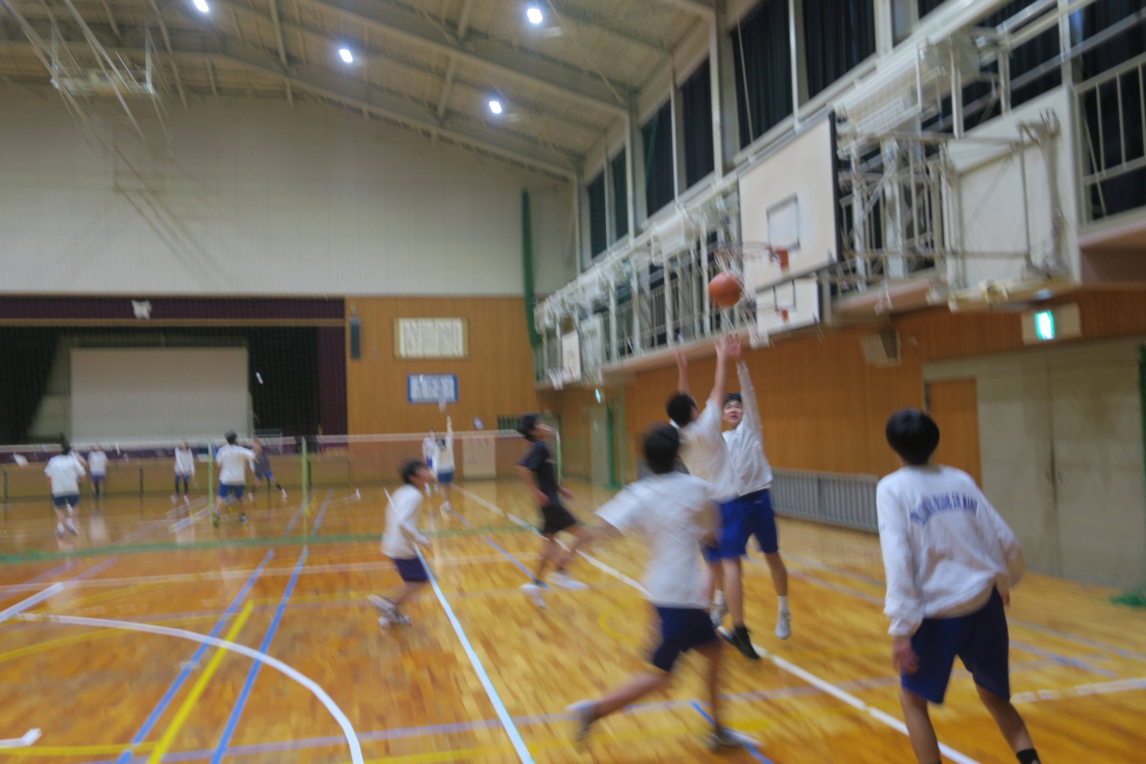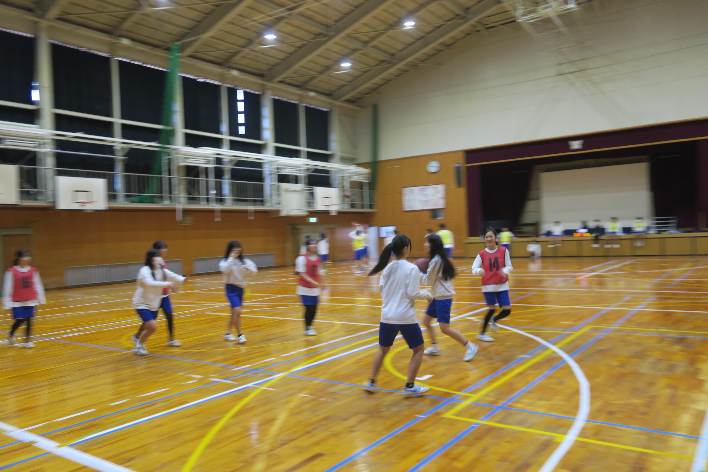 3年3組は体育の授業でした。バスケットボールのゲームでした。女子は人数が少ないためゲームに出続けていて少し疲れ気味でした。