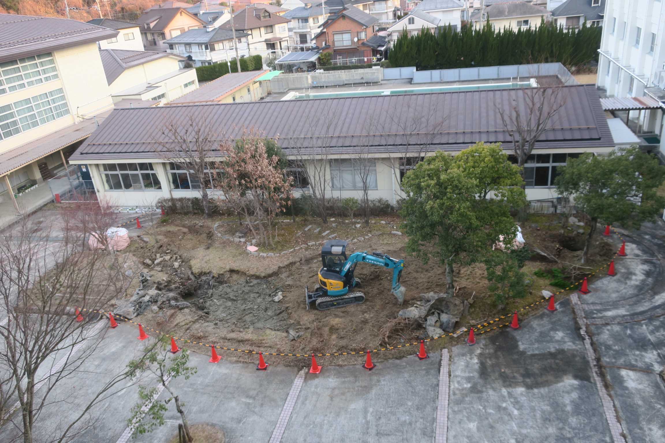 昨日から中庭プロジェクト第2弾の中庭改良工事が始まりました。PTAの協力を得て地域の方(保護者)が工事をおこなっていただいています。今日で工事が完了する予定です。スッキリした中庭ができあがるのを楽しみにしておいてください。