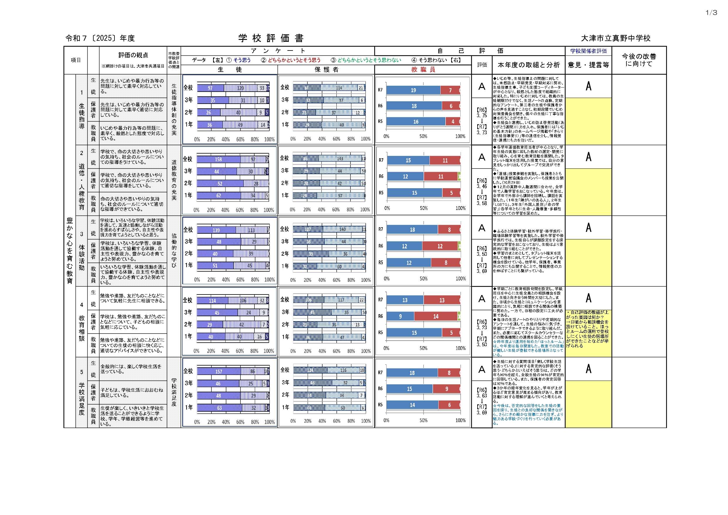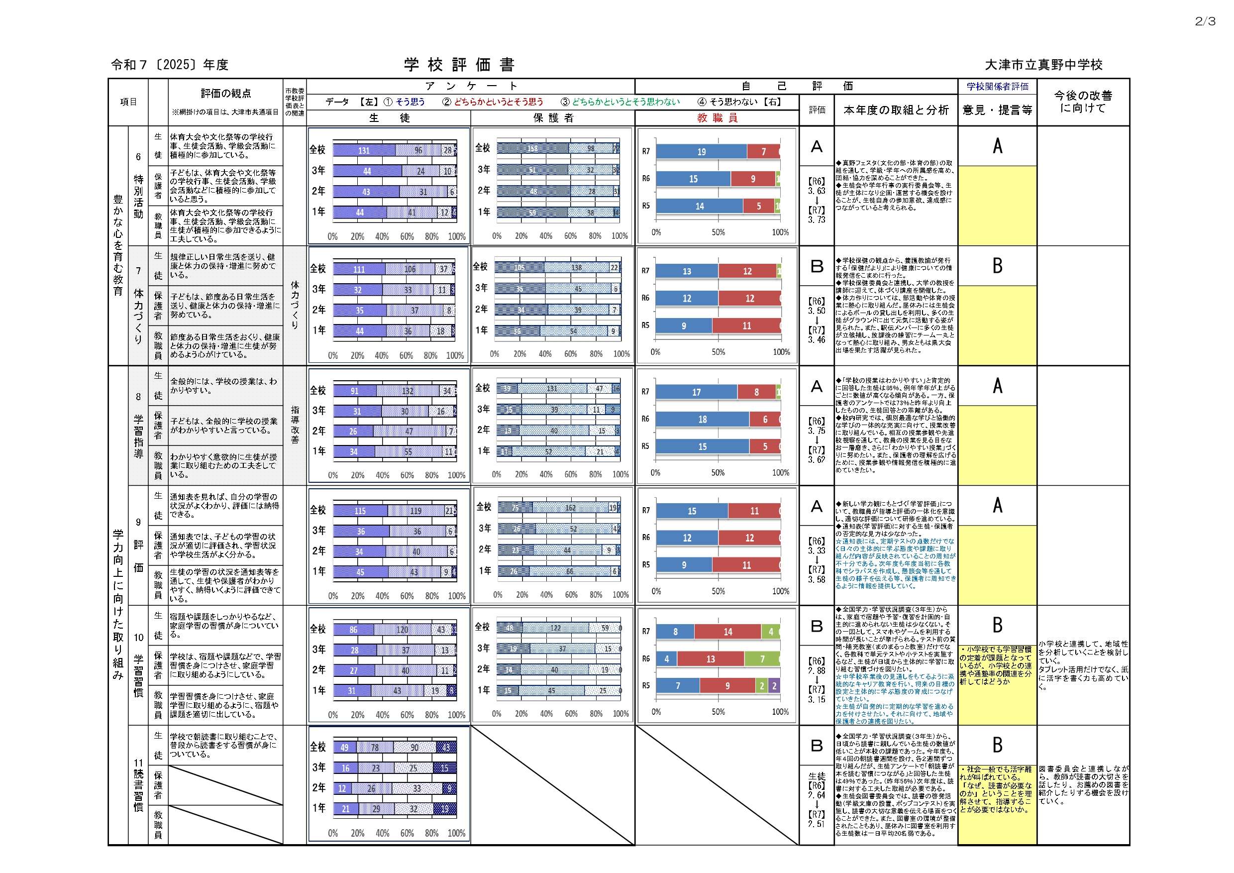 保護者評価、生徒評価にご協力いただきました皆さまに心より感謝申し上げます。また、学校関係者評価において貴重なご意見をお寄せいただきました学校運営協議会委員の皆さまにも厚く御礼申し上げます。