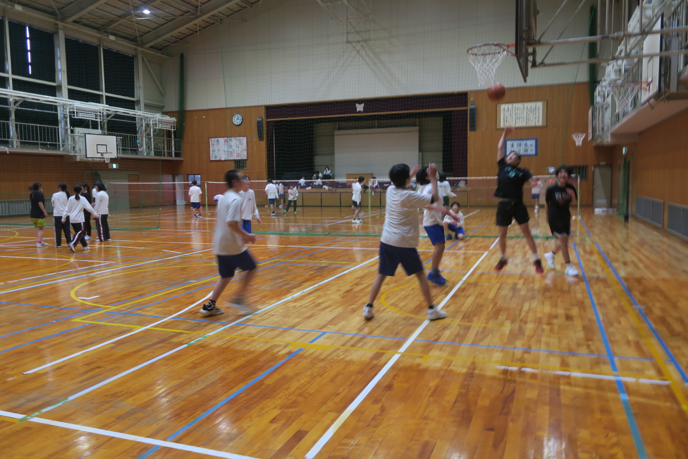 今日は陸上競技部が志賀中との合同練習にのぞみます。男子バスケットボール部が唐崎中学校との練習試合にのぞみます。ソフトテニス部、ソフトボール部、バドミントン部が学校で練習です。