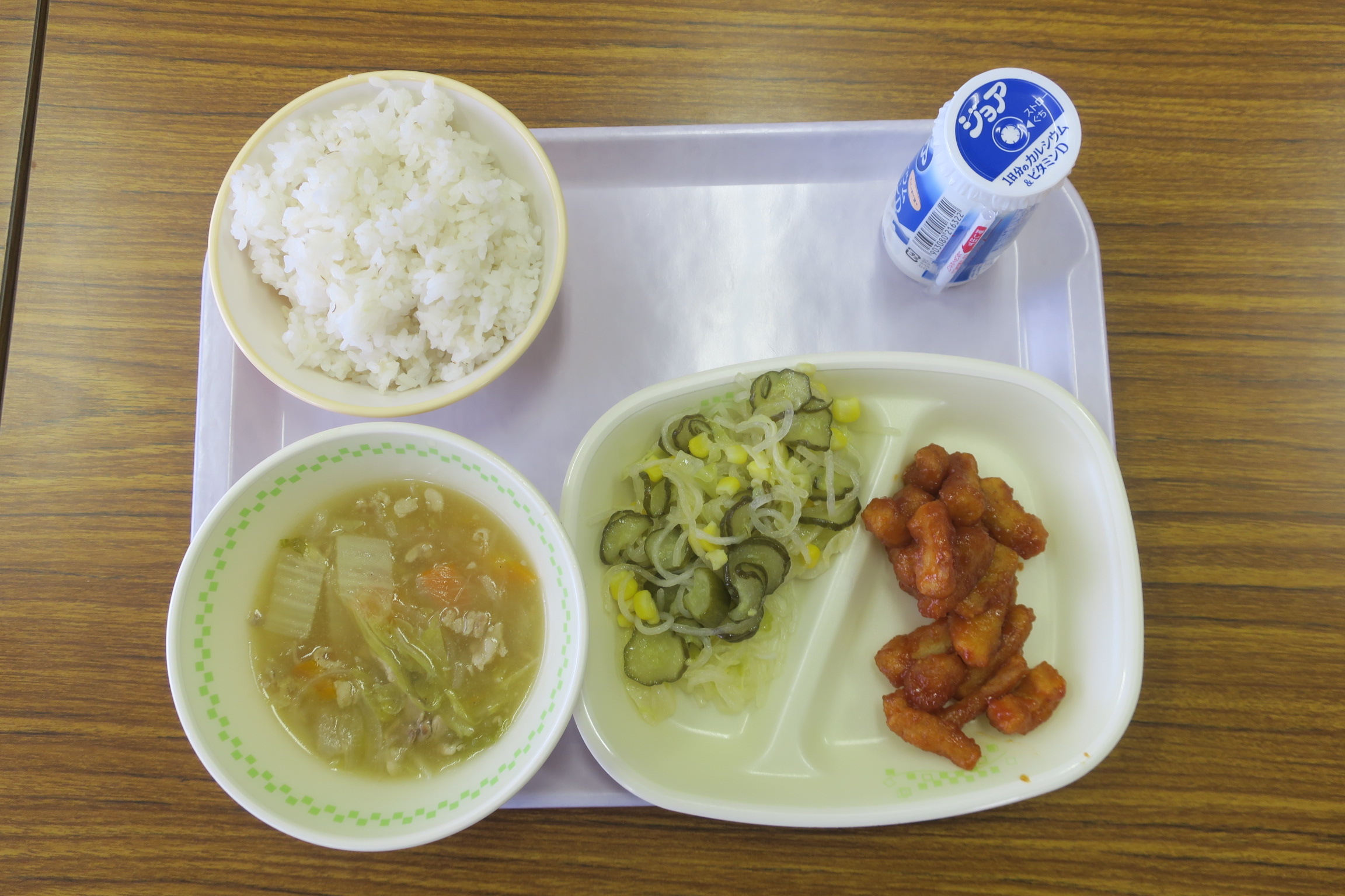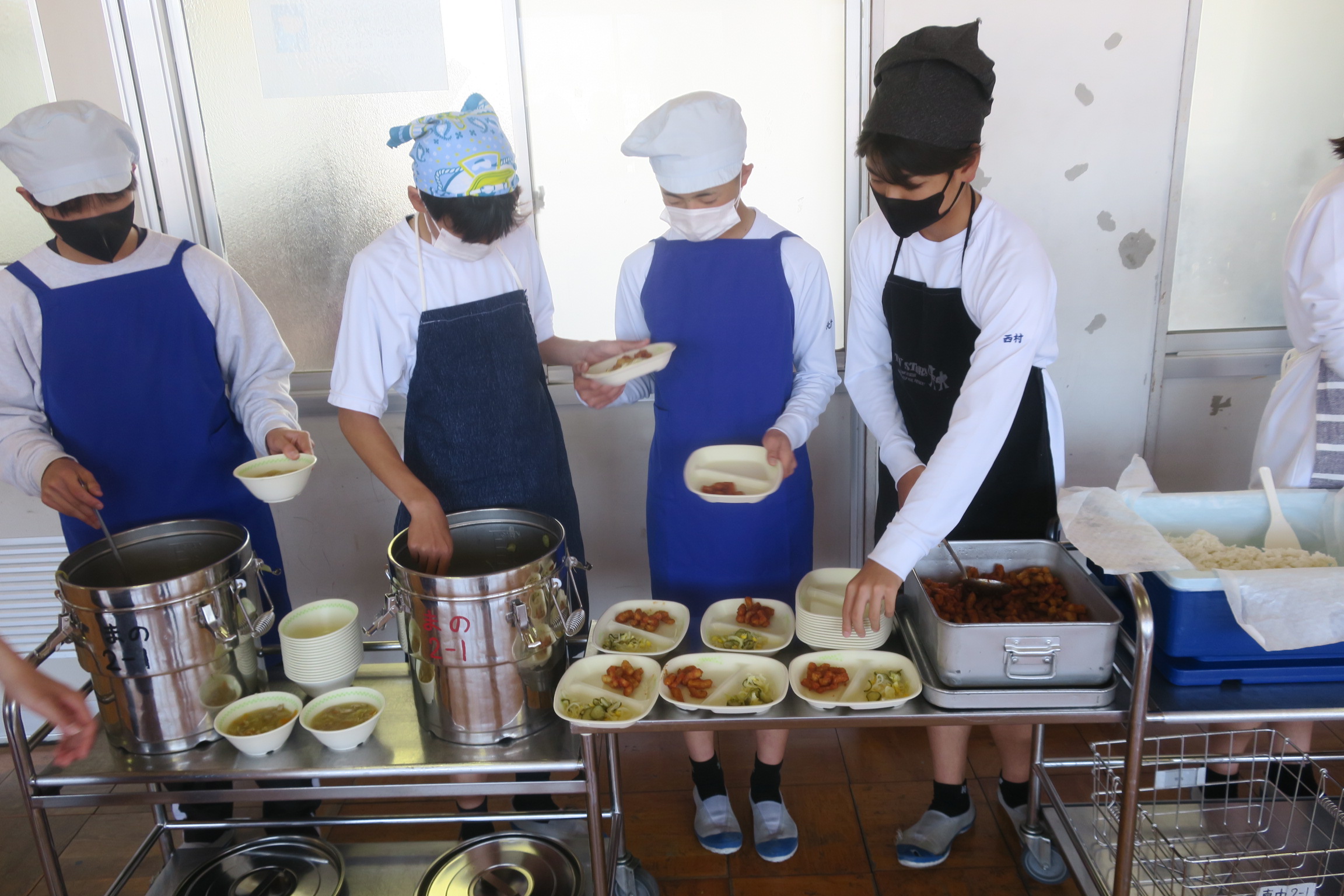 令和7年度の給食が今年度ラストになりました。ラストのメニューは麦ごはん、のむヨーグルト(B)、いかのチリソース、はるさめととうもろこしのサラダ、八宝菜でした。給食当番が役割分担をしてスピーディに準備をしてくいました。2年生はおかわりに長い行列ができていました。山盛りのごはん、器いっぱいの八宝菜をおいしそうに食べていました。1年間ごちそうさまでした。おいしい給食を調理していただいた北部調理場のみなさんありがとうございました。給食の準備や後始末をしていただいた配膳員のみなさんありがとうございました。
