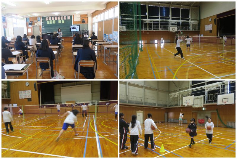 今日は真っ青な空が広がり、暖かな日差しが降り注ぐ中、真野中生はどの部活動も元気いっぱいに取り組んでいます。吹奏楽部は大小コンテストを終え、次は入学式での入退場演奏、そして春の吹奏楽祭に向けて新たなスタートを切りました。動画を見ながら次に演奏する曲のイメージを膨らませ、すでにパートごとに分かれて熱心に練習を進めています。男子バスケットボール部は2対2の練習に取り組み、パスをつないでシュートに持ち込んだり、ドリブルで切り込んでシュートを放ったりと、さまざまなプレイに挑戦していました。女子バスケットボール部は、右から左へと場所を変えながらレイアップシュートの練習を繰り返し、基本動作の精度を高めていました。バドミントン部は2人組でレシーブ、スマッシュ、フェイントなど多様な打ち方を試しながら、息の合ったラリーを続けていました。