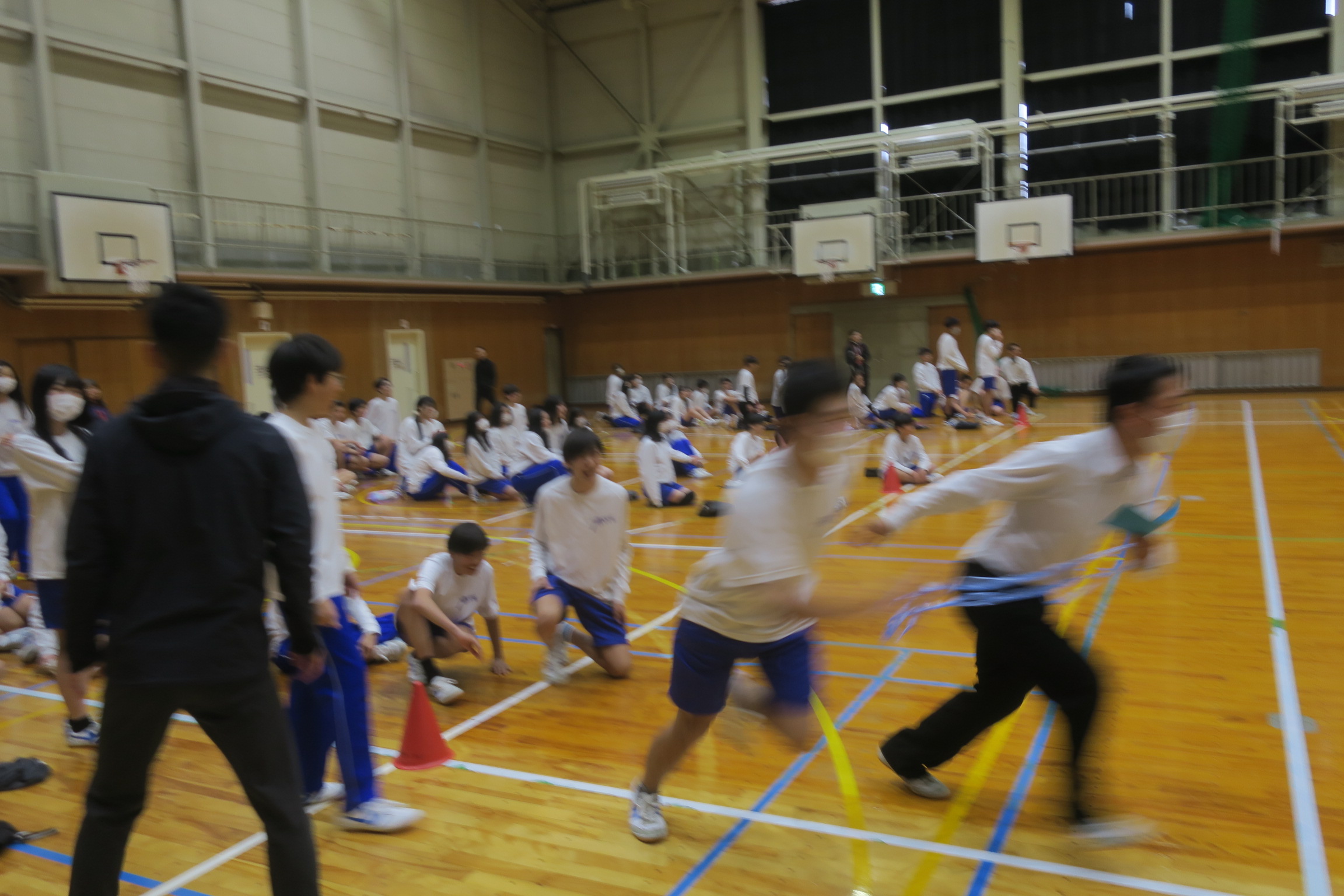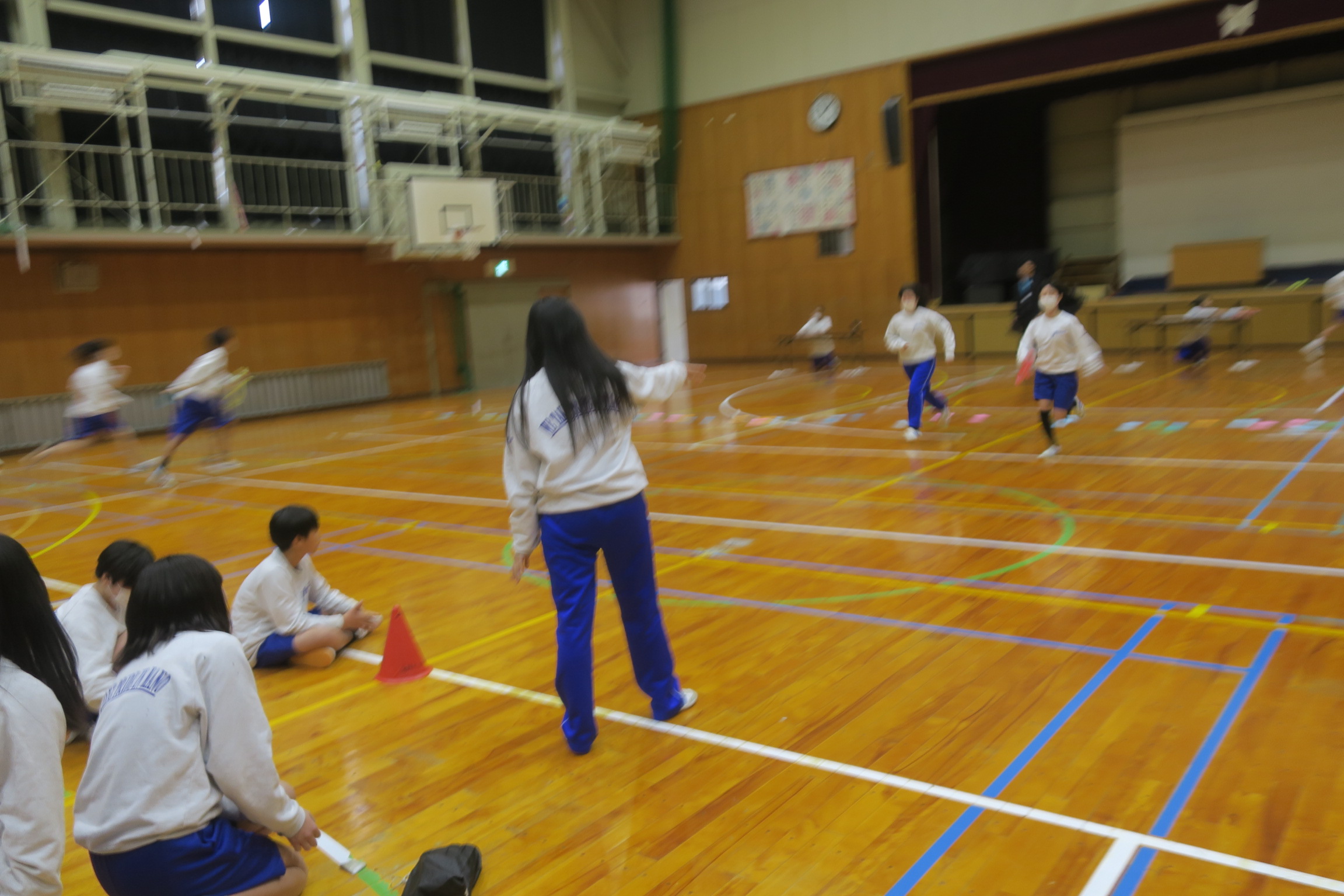 今日の3時間目に、2年生のお楽しみ会が体育館で行われました。学級委員会が企画した「クラス対抗・借り人・借り物競走リレー」が実施され、体育館は大きな盛り上がりを見せました。体育館中央に置かれたカードを拾い、そこに書かれた指示にしたがって人を探したり、体育館のあちこちに置かれた物を見つけたりと、どのクラスも懸命に取り組んでいました。走る人だけでなく、仲間を応援する声があちこちから飛び交い、体育館全体が温かな雰囲気に包まれました。