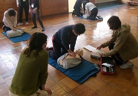 救急救命法の研修は、水泳学習が始まるまでに、1学期の早い段階で毎年行っている大切な研修です。日本赤十字社滋賀県支部から講師の先生をお招きし、全職員が参加して研修を行いました。研修では、心肺蘇生法やAEDの使い方について、人形を使った実践練習をグループに分かれて行いました。心肺蘇生法やAEDを使わなくてもよいよう、今後も安全な教育活動に努めて参ります。