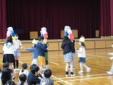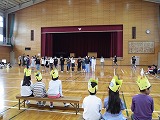 9日(金)、全校の子どもたちが体育館に集まり、1年生を迎える会を開きました。会場準備、1年生の入場補助、司会進行、代表あいさつなど、6年生が大活躍。3年生が作った冠をかぶった1年生はニコニコ顔。2年生は校歌を元気よく歌いました。4年生は大津体操。1年生も笑顔でチャレンジしました。
