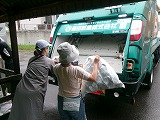 本校のPTAが子どもたちのためにとしてくださっている活動の一つに「空き缶文庫」があります。これは、アルミ缶の回収をし、業者に引き取ってもらった代金を学級文庫に入れる本の購入資金とする活動です。空き缶の回収には地域の方々もご協力いただいています。今日は今年度2回目の業者回収があり、PTAの方々が来てくださり、回収場所に山積みとなった空き缶をパッカー車へ移していきました。