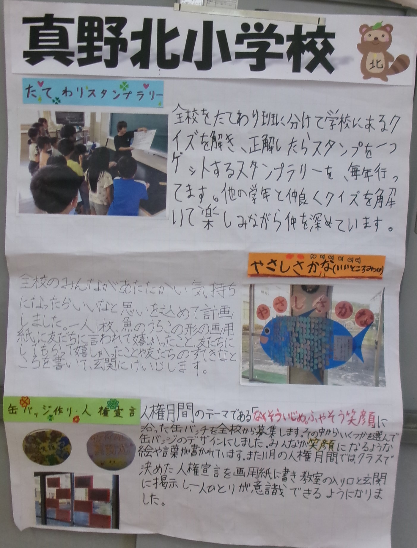 全校のみんなのために、真野北小学校をもっともっといい学校にするために、力を合わせ、がんばる5年生と6年生です。