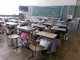 昨日、始業式の後の2時間目、10時からシェイクアウト訓練を行いました。この訓練は、緊急地震速報を聞いたときや大きな揺れを感じたときにどうずるか、とっさにどう動くかの訓練で、防災の日にあわせて大津市内の多くの場所で一斉に行われています。10時、放送で訓練の概要を説明した後、実際に緊急地震速報を流し、教室での最初の動きを確かめました。子どもたちは頭を守るために机の下に潜り込み、机の脚をしっかりとつかんでいました。大きな地震はいつくるかわかりません。もしものときどうするか・・・避難訓練等で子どもたちにも考えさせていきたいと思います。