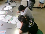 未来会議の前半は、各校の取組についてのポスターセッションでした。真野北小の子どもたちも、たてわりスタンプラリーや人権宣言の缶バッジづくりなどについてまとめ、発表しました。また、自分たちの発表でない時間には、他校の発表を聞き、感じたこと、思ったことなどを付箋に書いて発表者に渡しました。