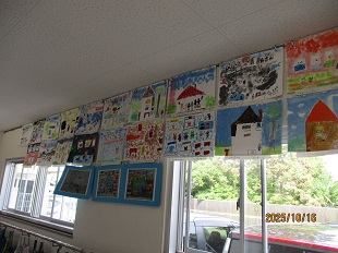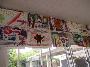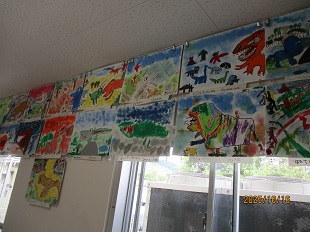 2年生の教室前廊下では素敵な図工の作品がたくさんならんでいます。