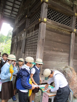 子どもたちは三井寺、長等商店街、長等市民センターの3か所を回り、